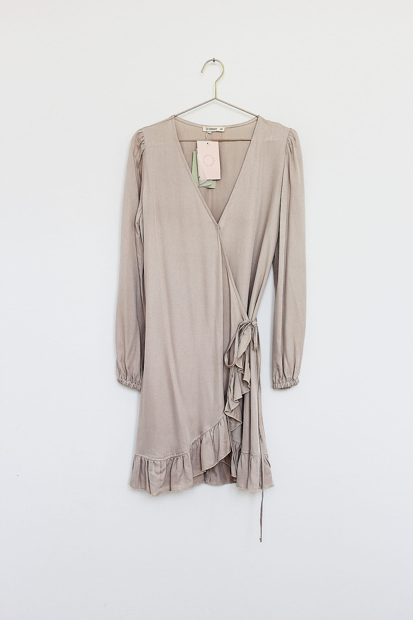 Beżowa sukienka z wiskozy, NOWA, LE COLLET, 34 (XS)