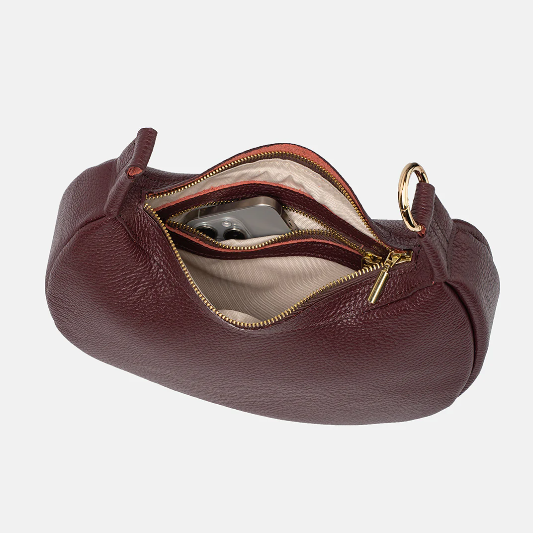 Torba Hedera w bordowym kolorze to połączenie wyrafinowanego stylu i funkcjonalności. Wykonana z włoskiej skóry o ziarnistej fakturze, zachwyca luksusowym wyglądem i miękkością w dotyku. Klasyczny, minimalistyczny design sprawia, że sprawdzi się zarówno na co dzień, jak i na wyjątkowe okazje. Zamknięcie na zamek, wodoodporna podszewka i wewnętrzna kieszeń zapewniają wygodę i bezpieczeństwo. Pasek o długości 40 cm idealnie układa się na ramieniu, czyniąc ją trwałym i eleganckim dodatkiem dla miłośniczek odważnych akcentów.