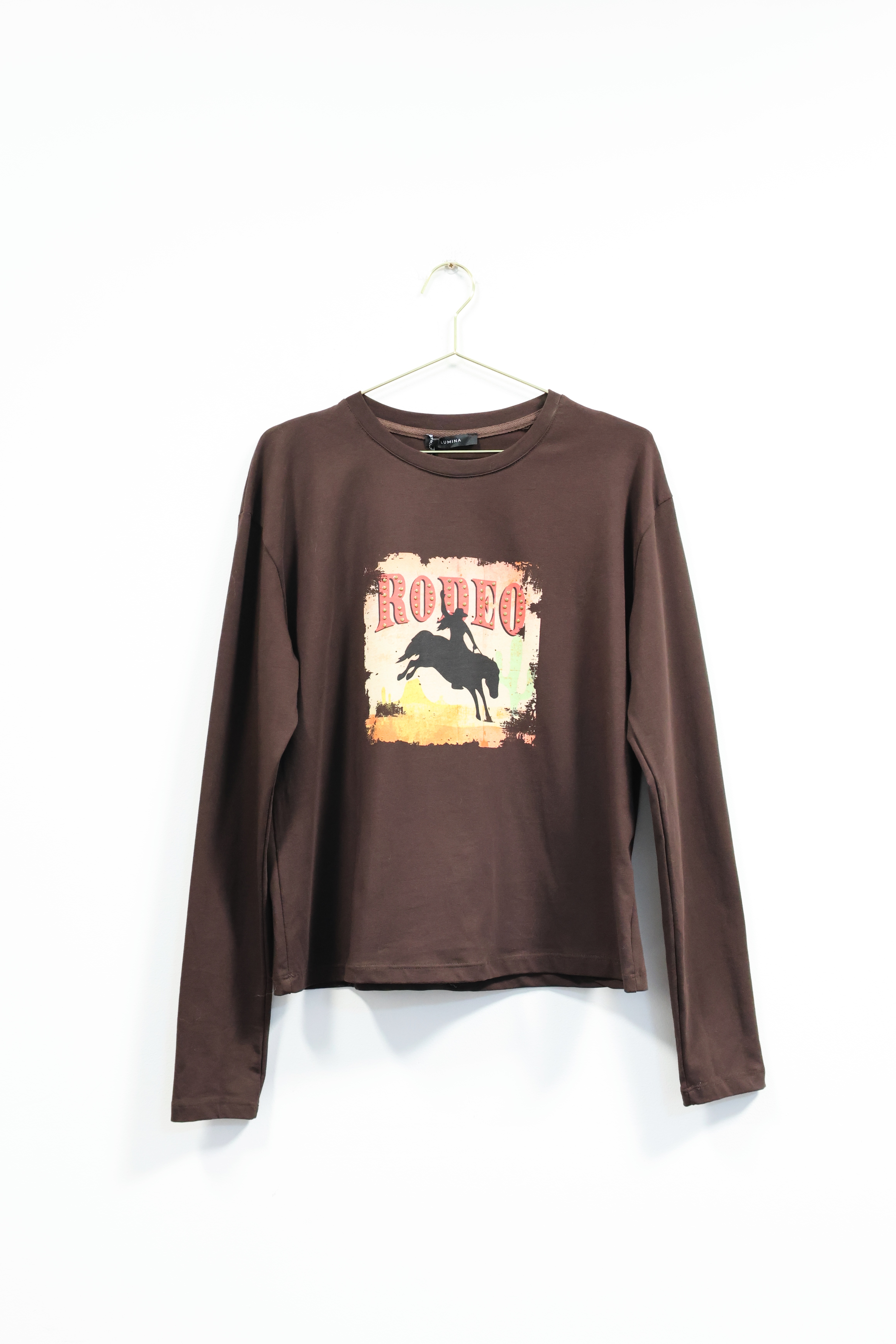 Brązowy longsleeve z grafiką, NOWY, LUMINA, ONE SIZE