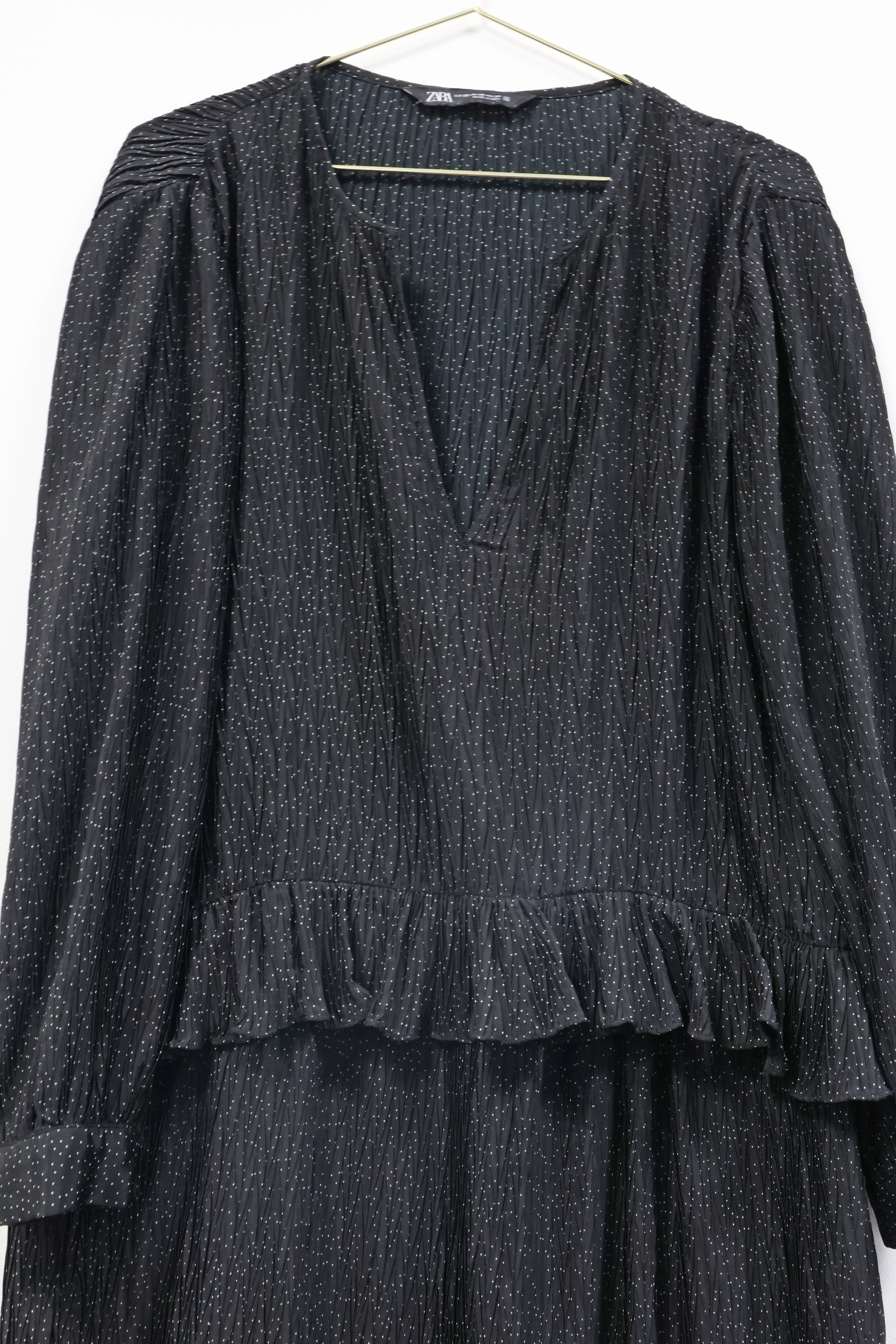 Czarna, luźna sukienka w drobne groszki, ZARA, 34/36 (XS/S)