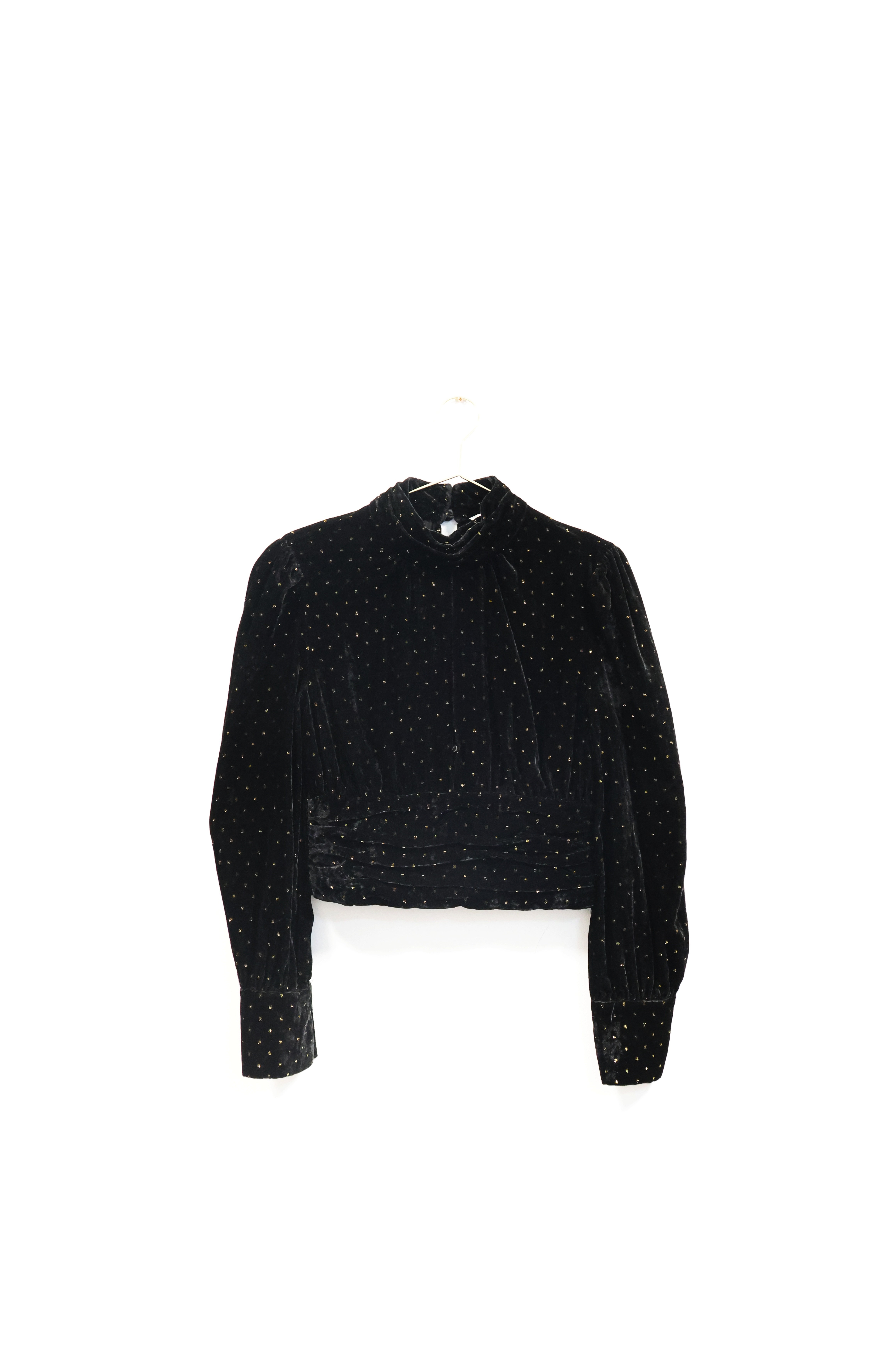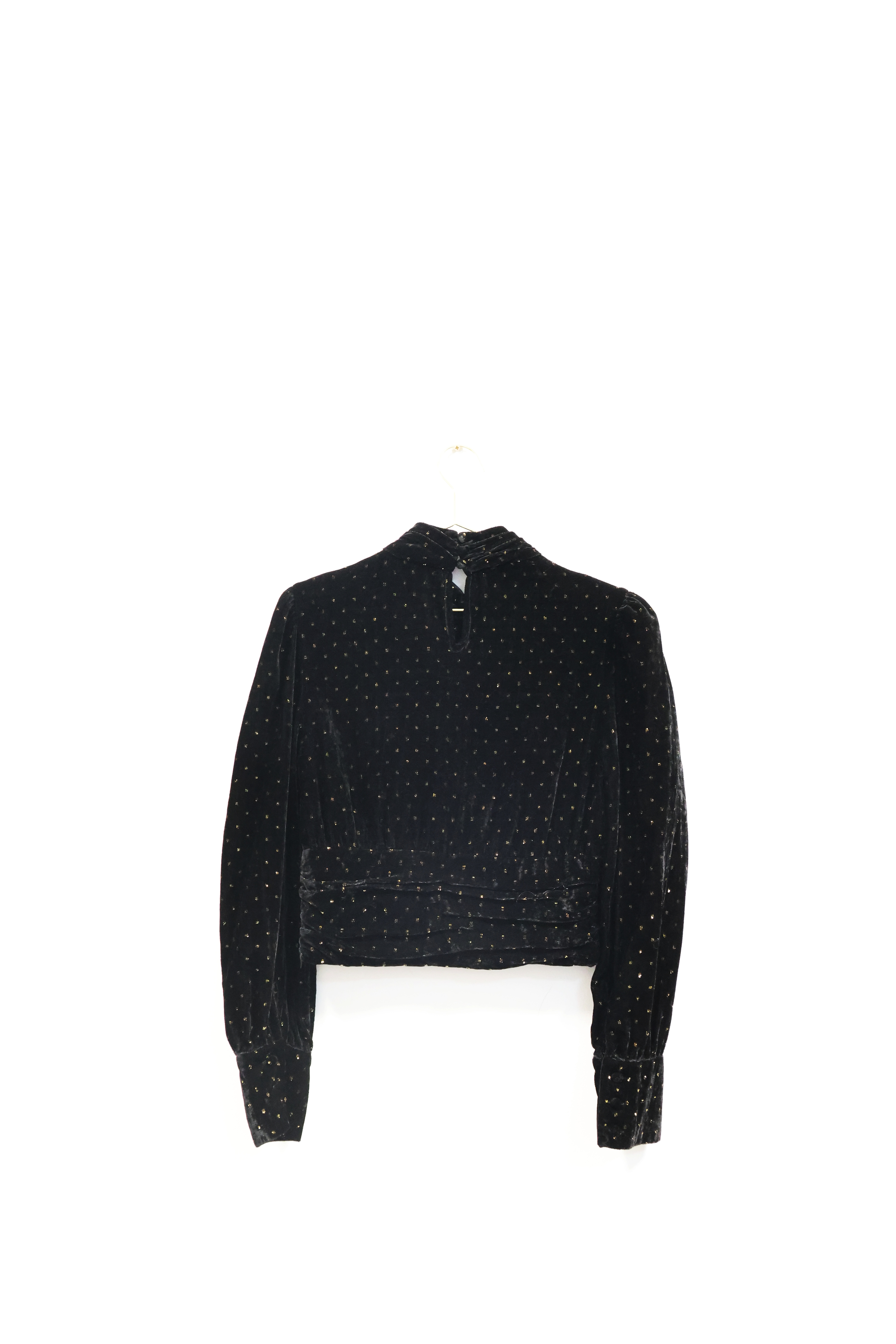 Czarna, welurowa bluzka w złote wzory, ZARA, 34 (XS)