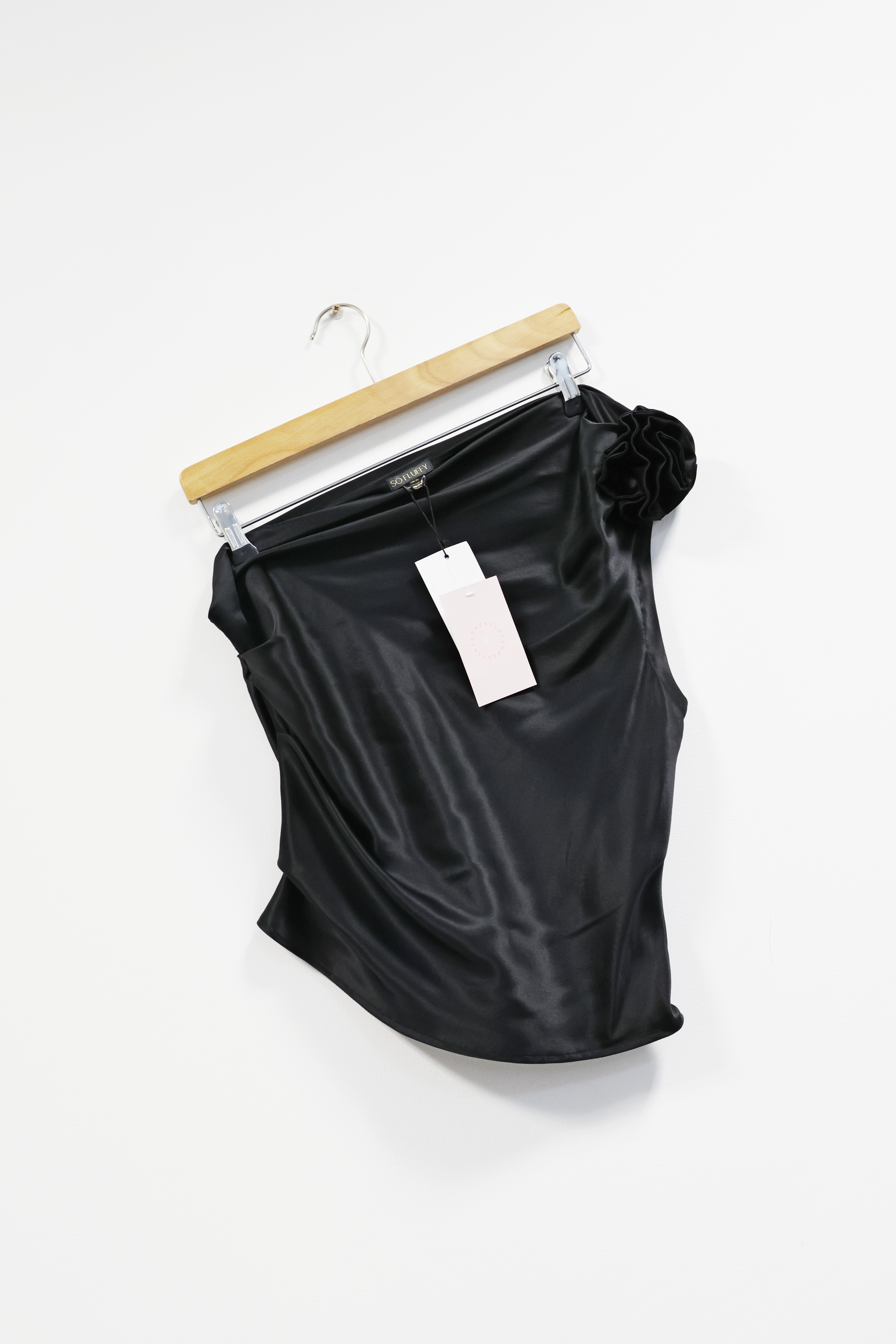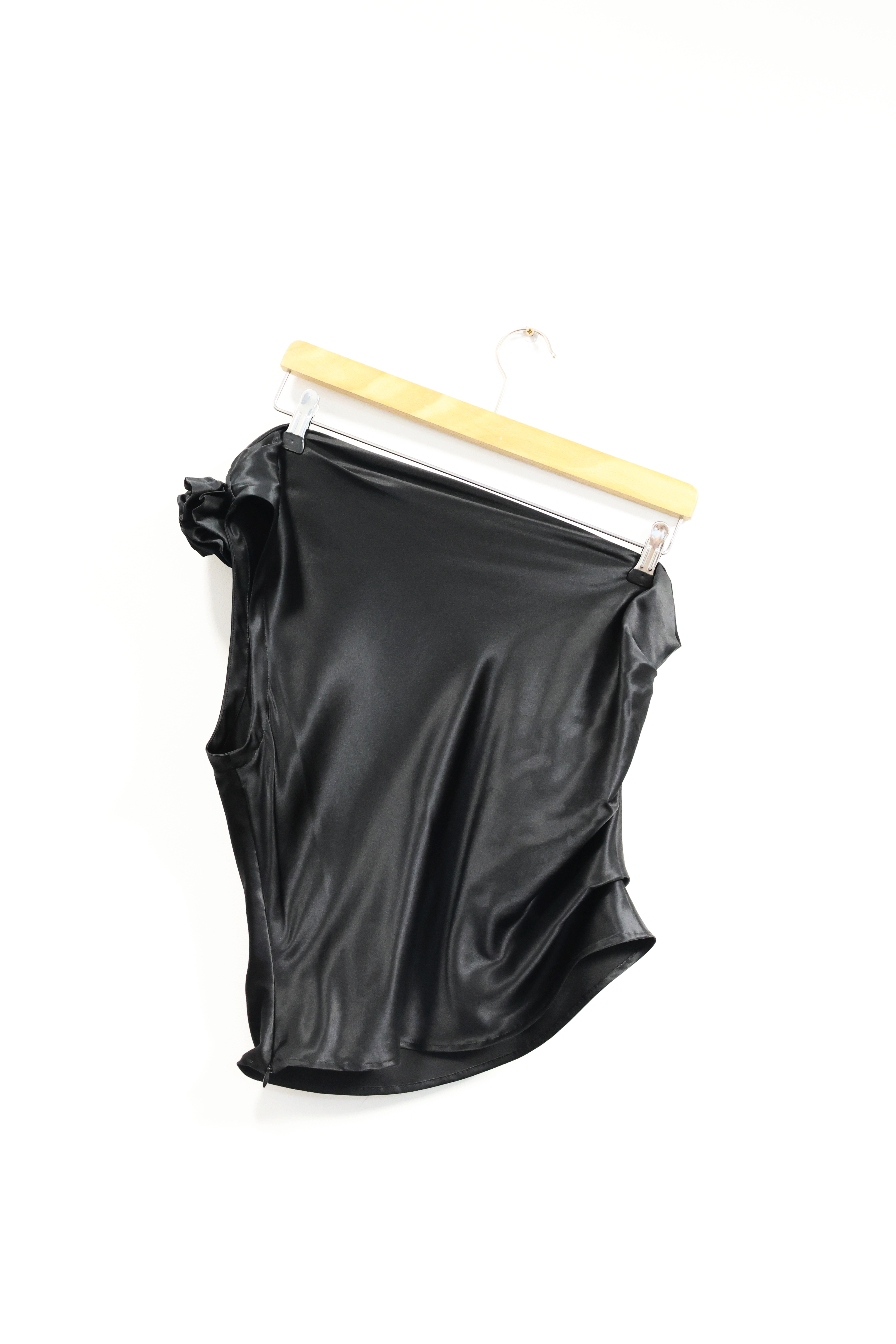 Czarna jedwabna bluzka na jedno ramię, NOWA, SO FLUFFY, 40 (L)