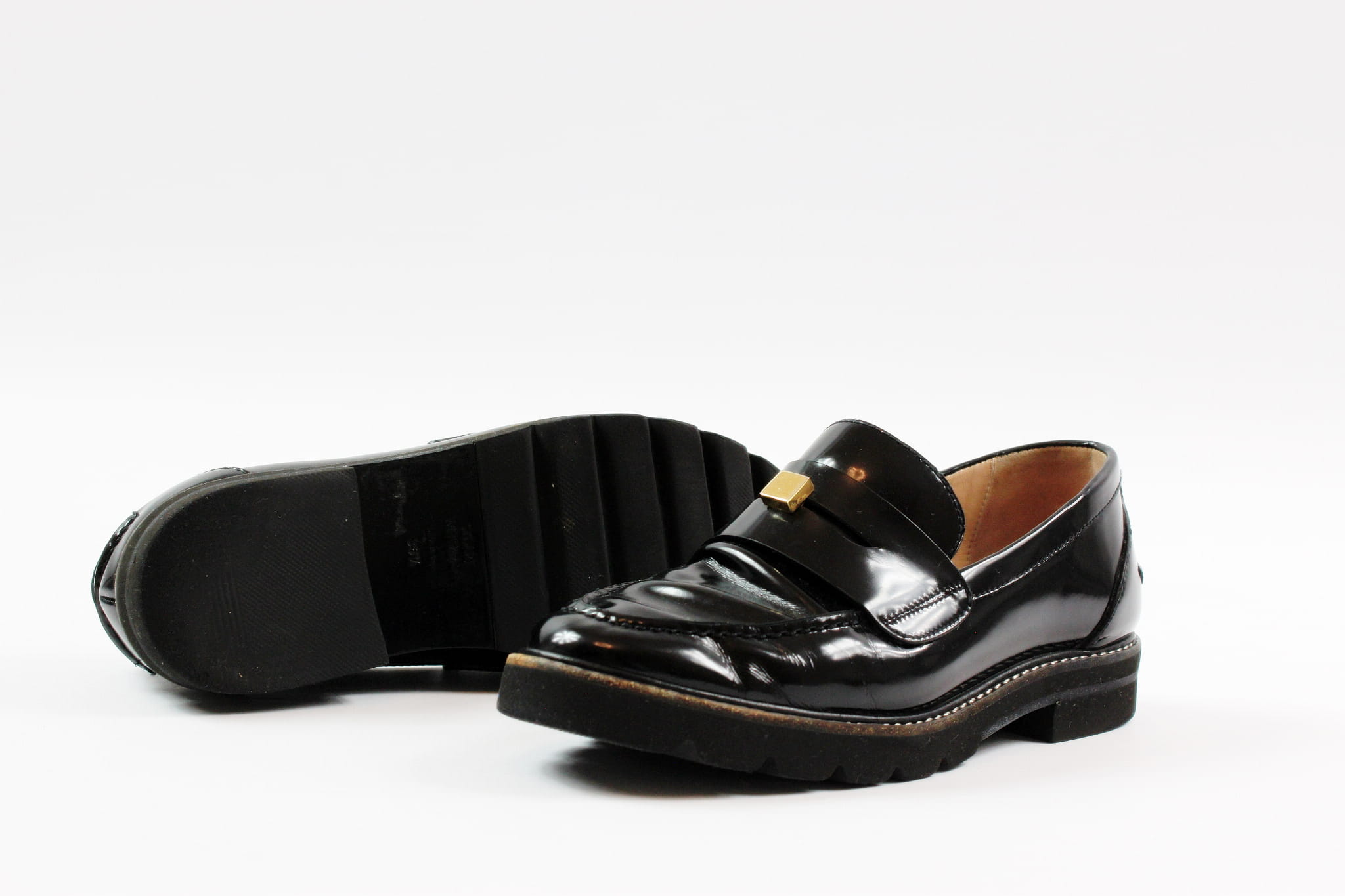 Czarne, lakierowane mokasyny, STUART WEITZMAN, 36,5