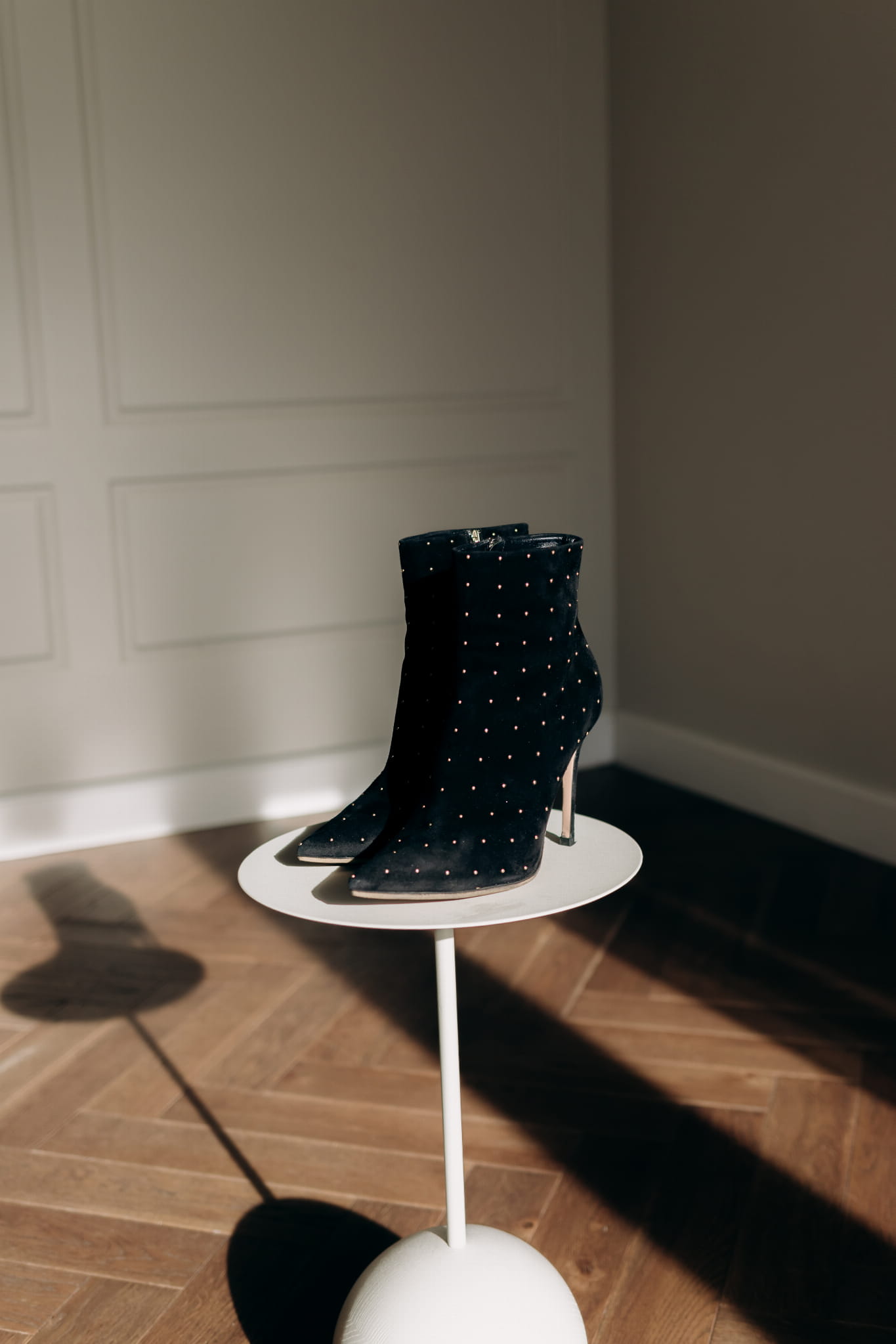 Czarne, zamszowe botki ze zdobieniem, GIANVITO ROSSI, 40