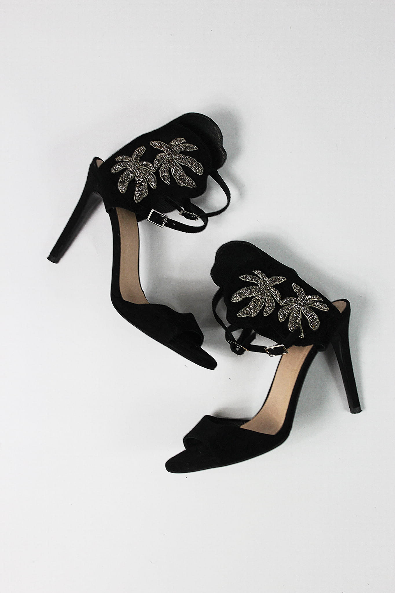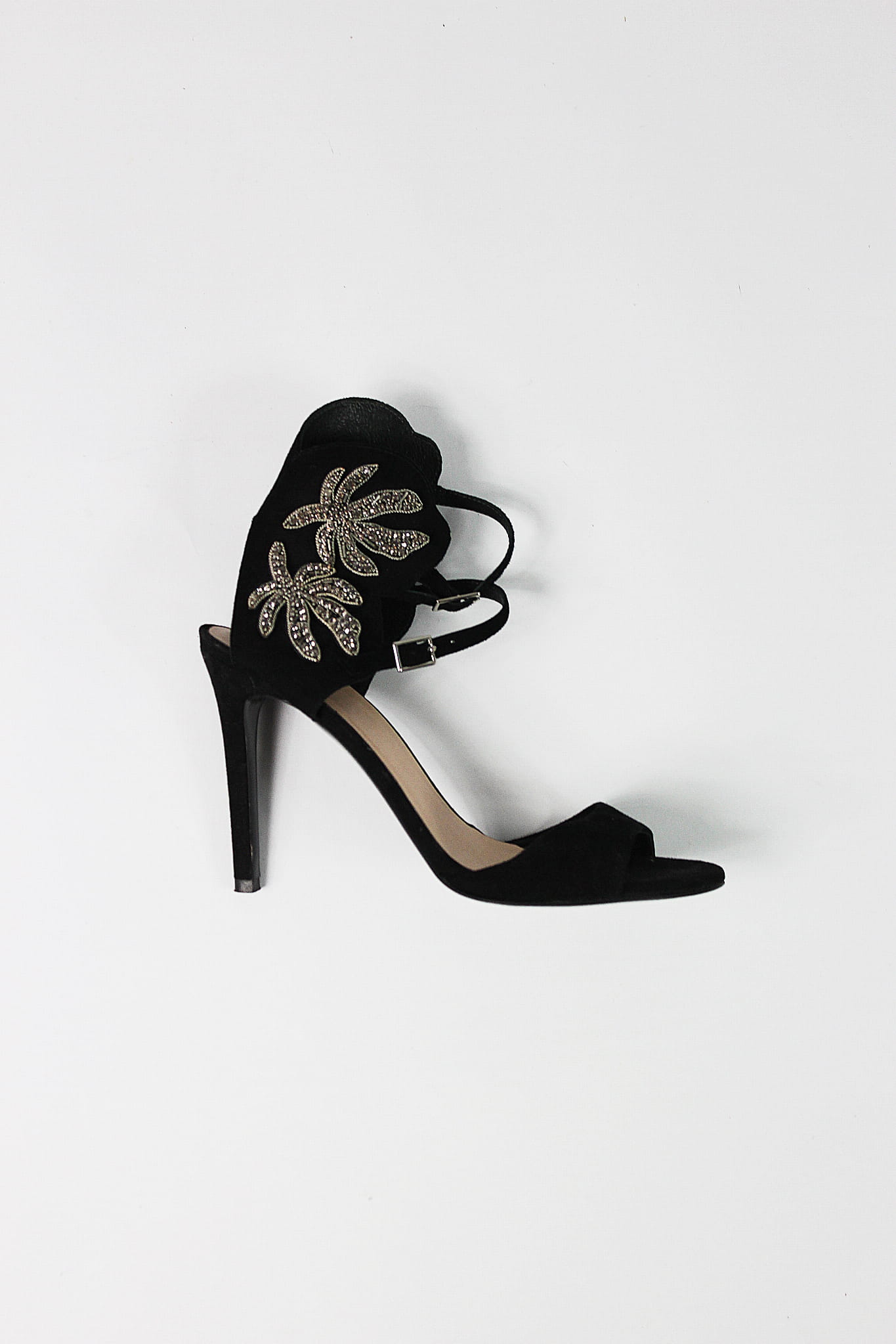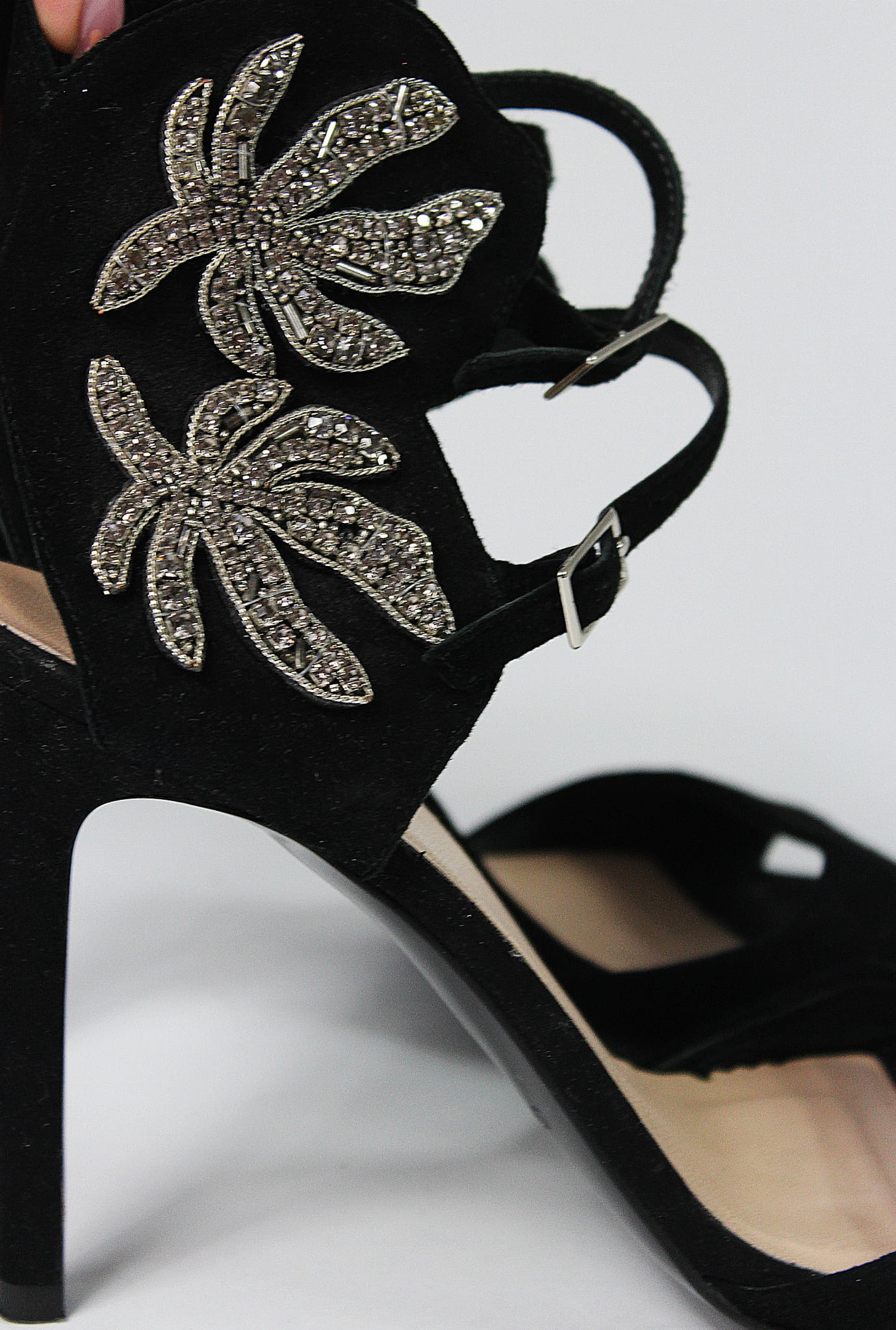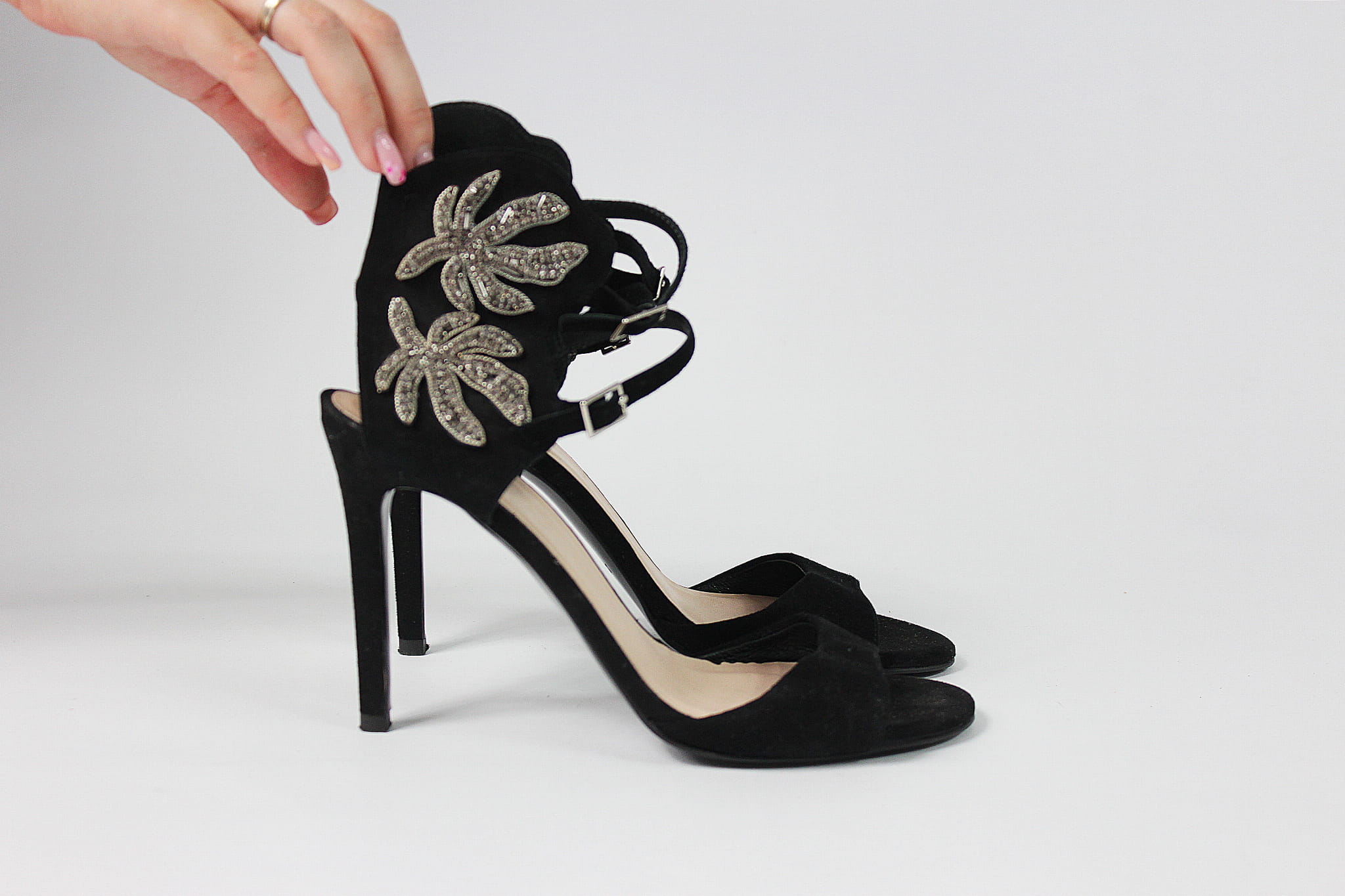 Czarne, zamszowe sandały ze zdobieniem wokół kostki, GINO ROSSI, 38