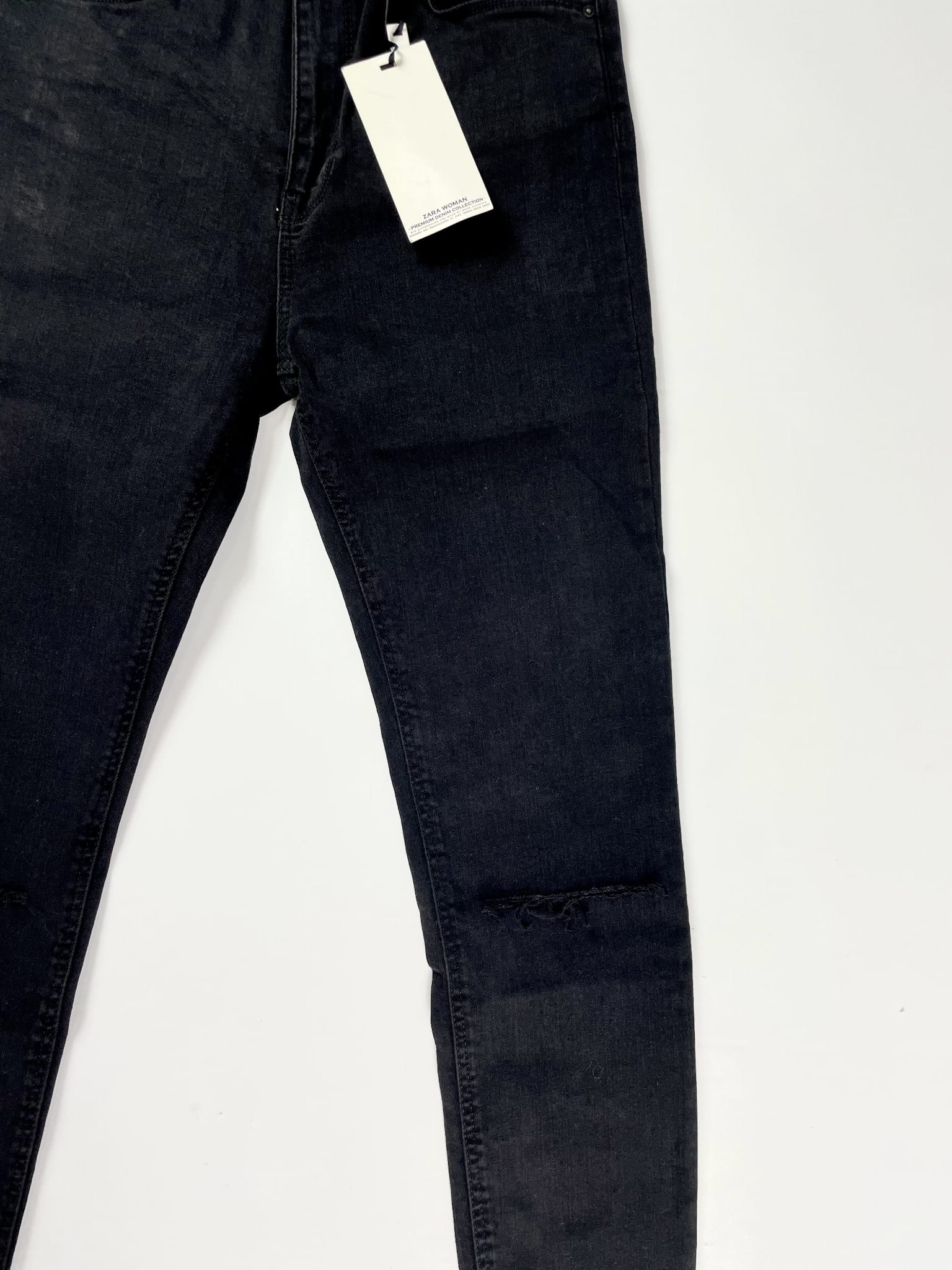 Czarne spodnie jeansowe z dziurami, NOWE, ZARA, 36 (S)