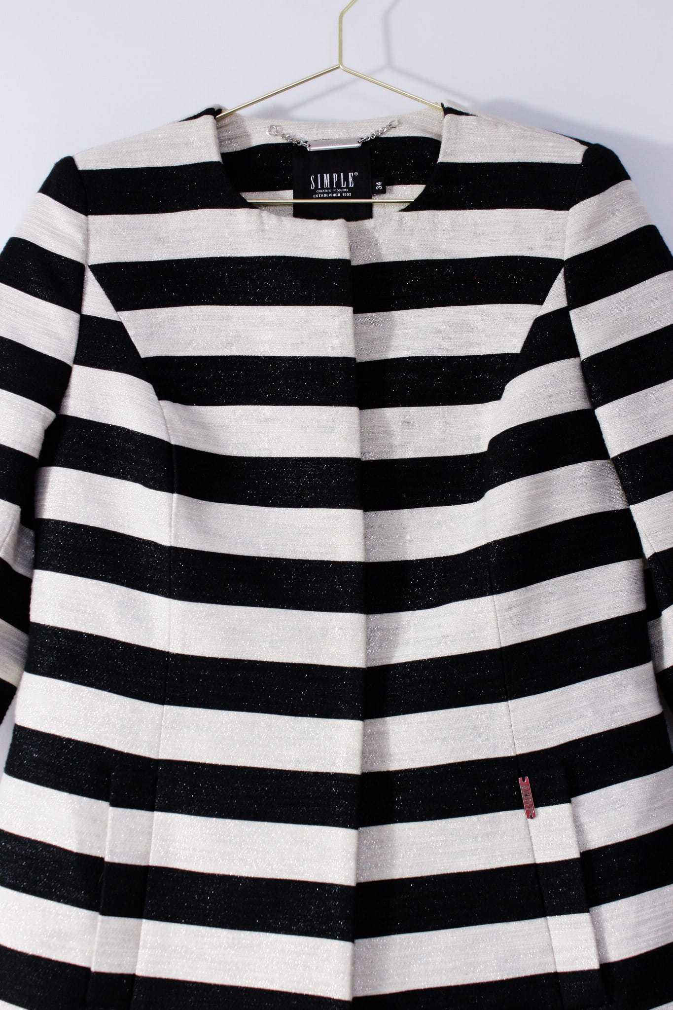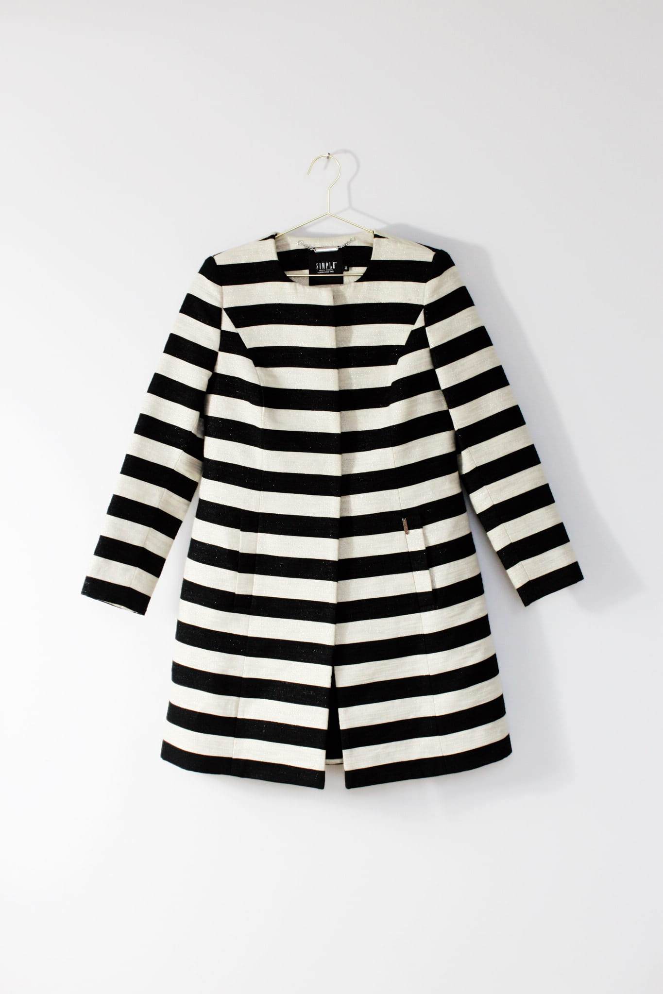 Czarno-złoty płaszcz w paski, SIMPLE, 34 (XS)