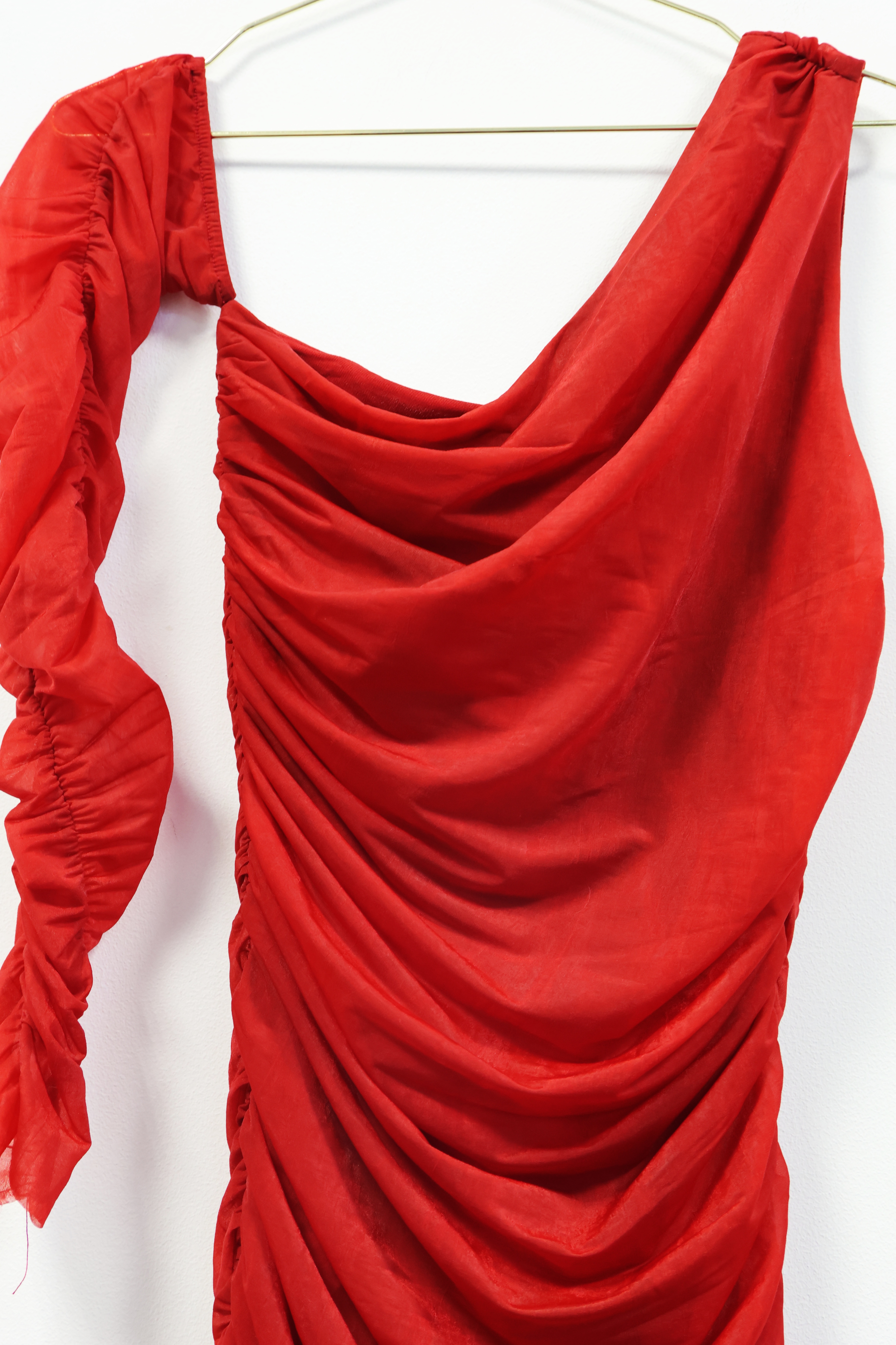 Czerwona drapowana, asymetryczna sukienka, ZARA, 36 (S)