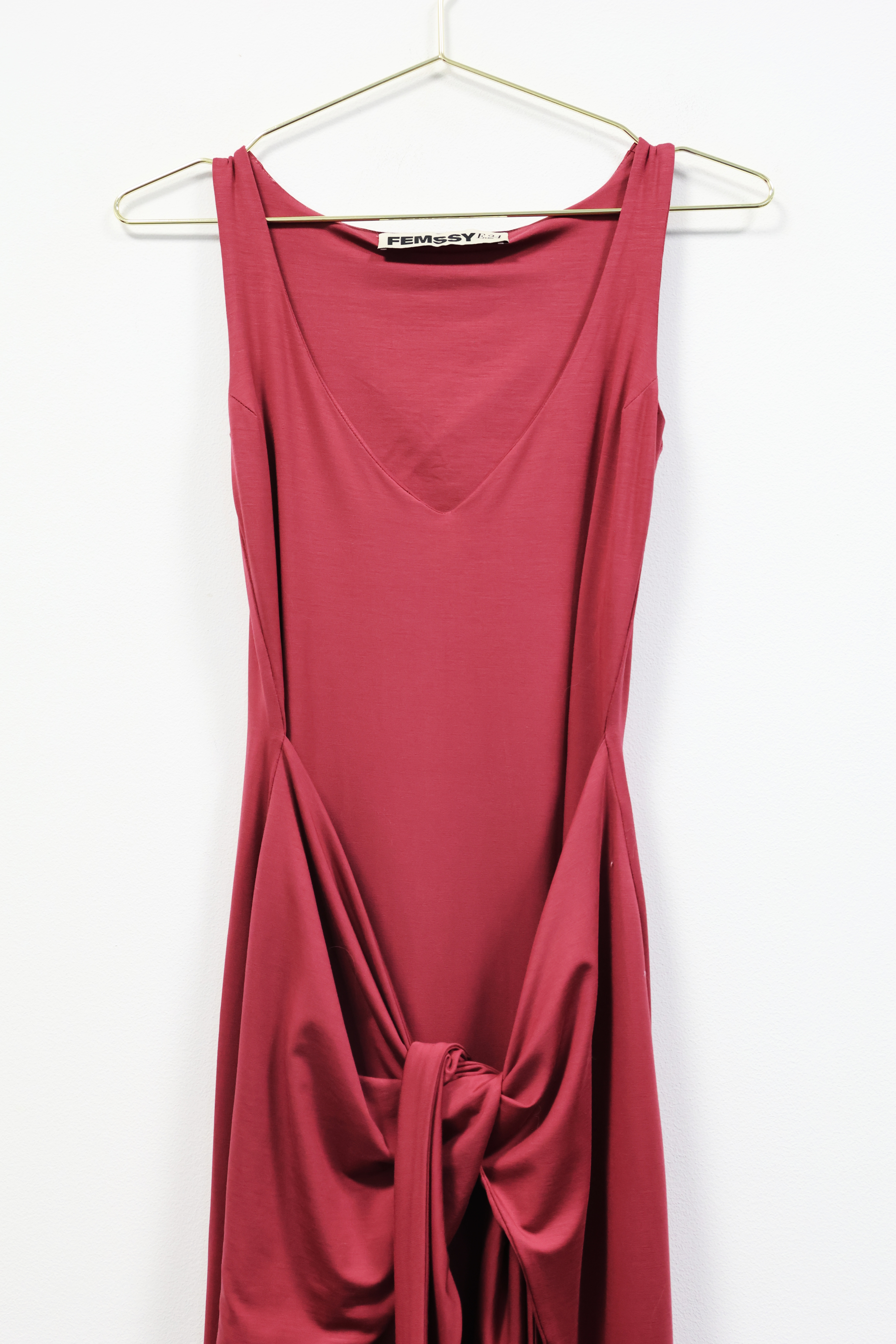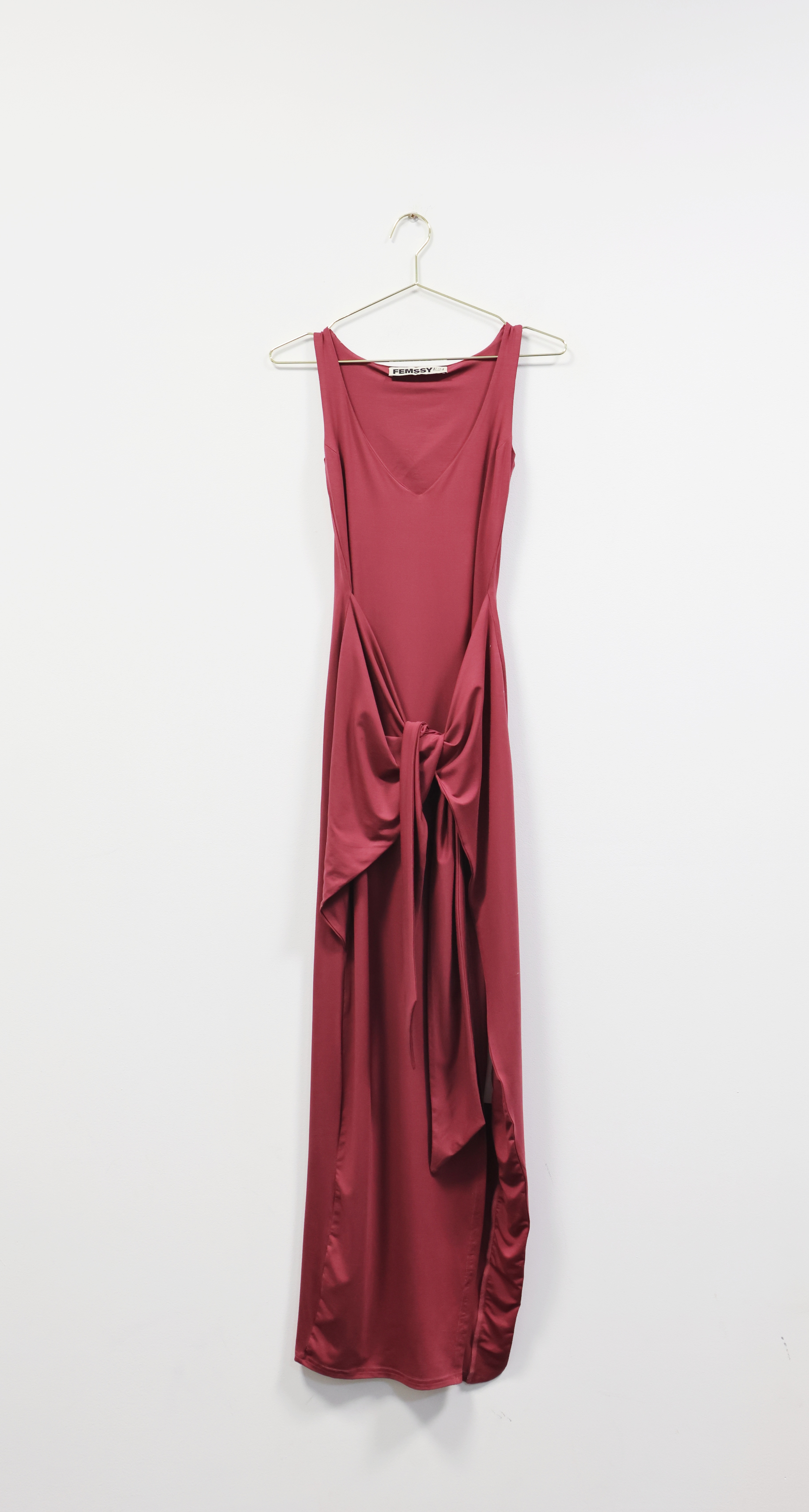 Długa bordowa sukienka z wiązaniem, FEMSSY, 34 (XS)