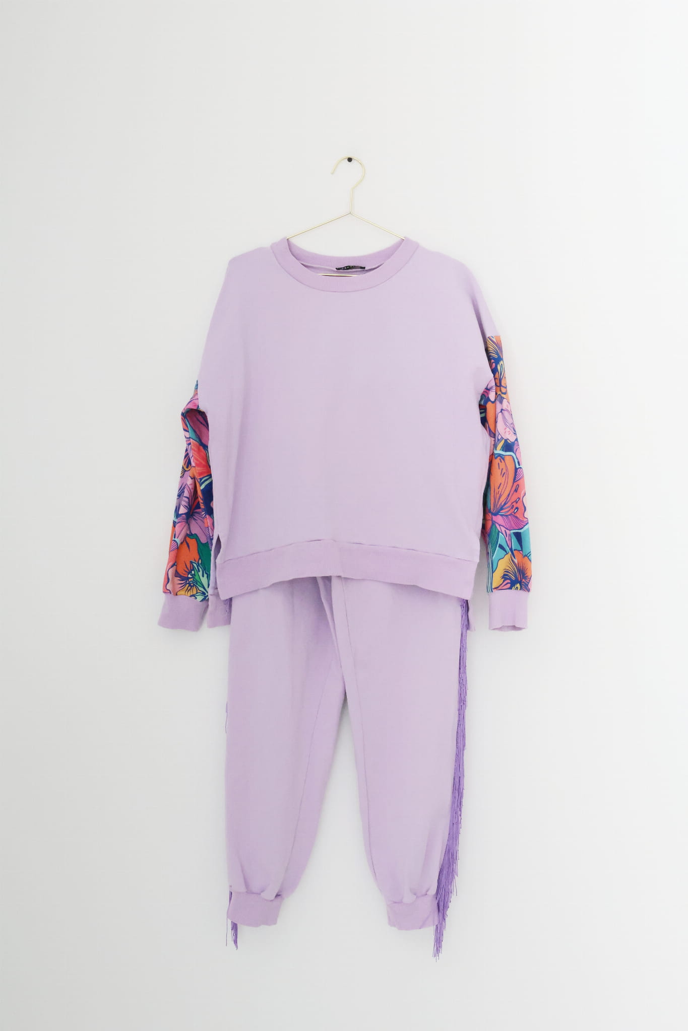 Fioletowy komplet dresowy z frędzlami, FRĘDZLAVF, 36 (S)
