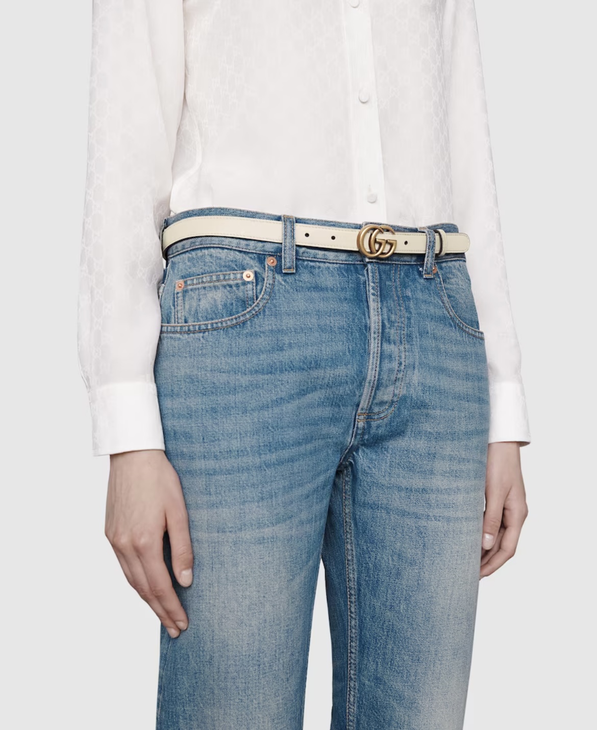 Kremowy skórzany pasek GG Marmont, GUCCI, 75