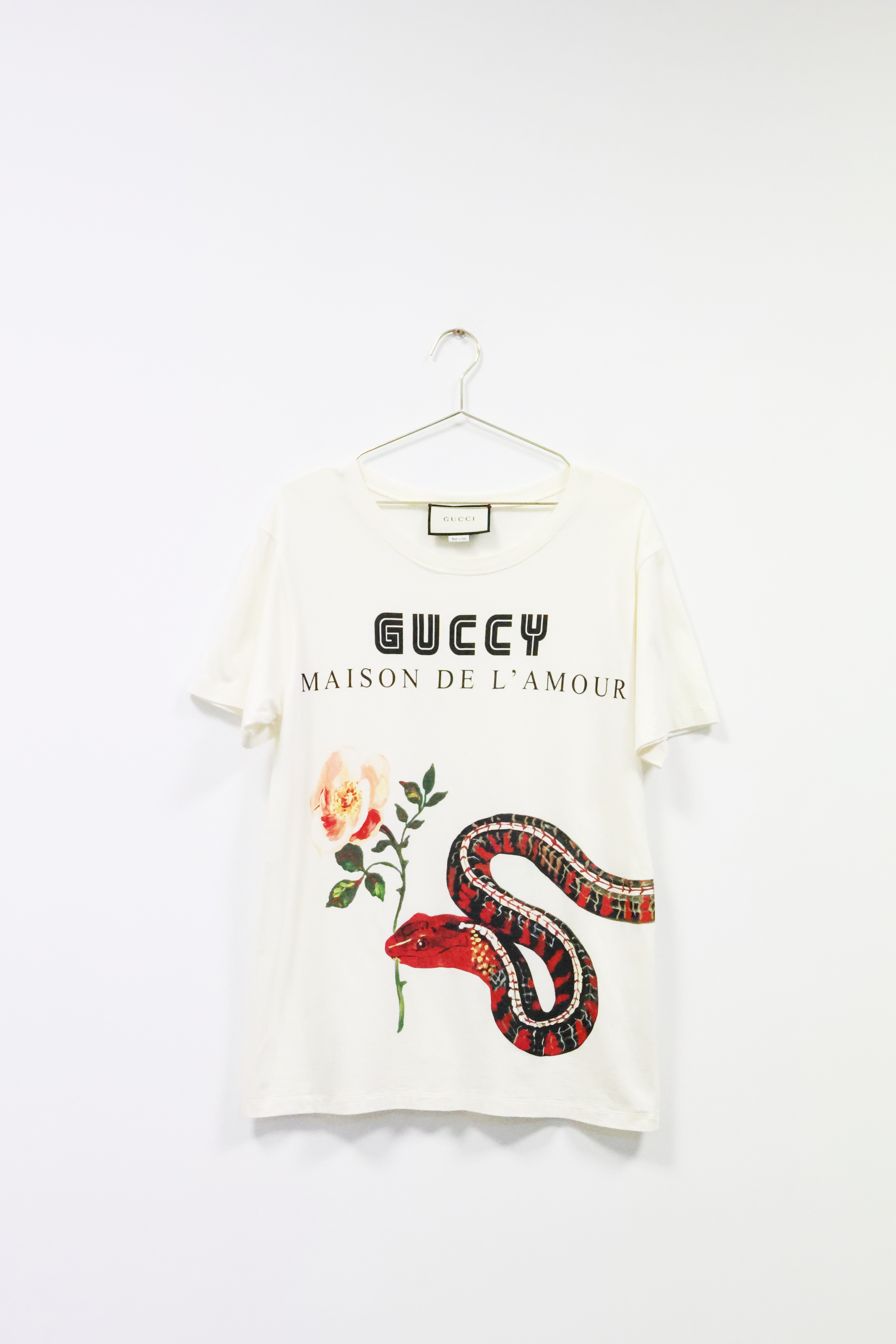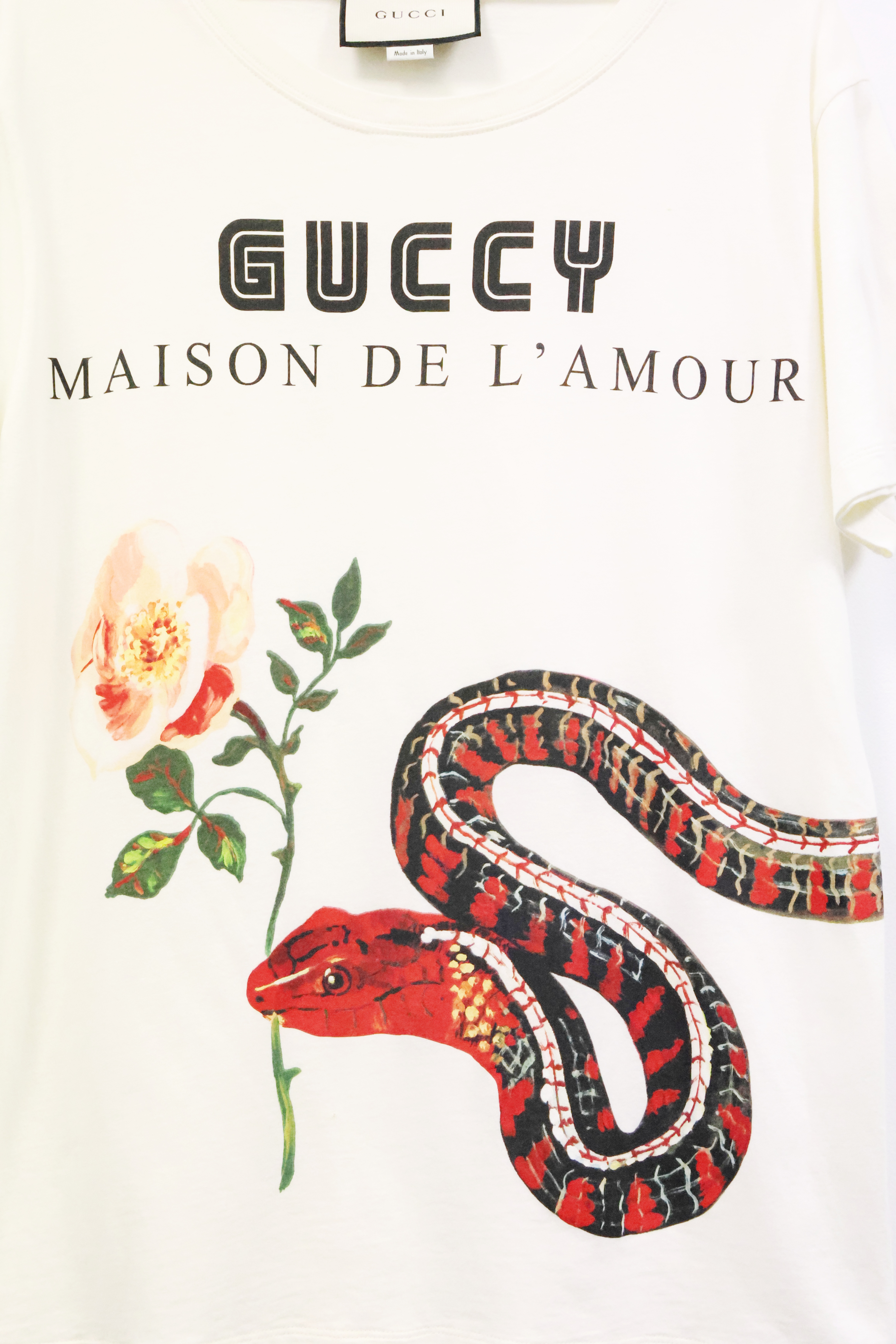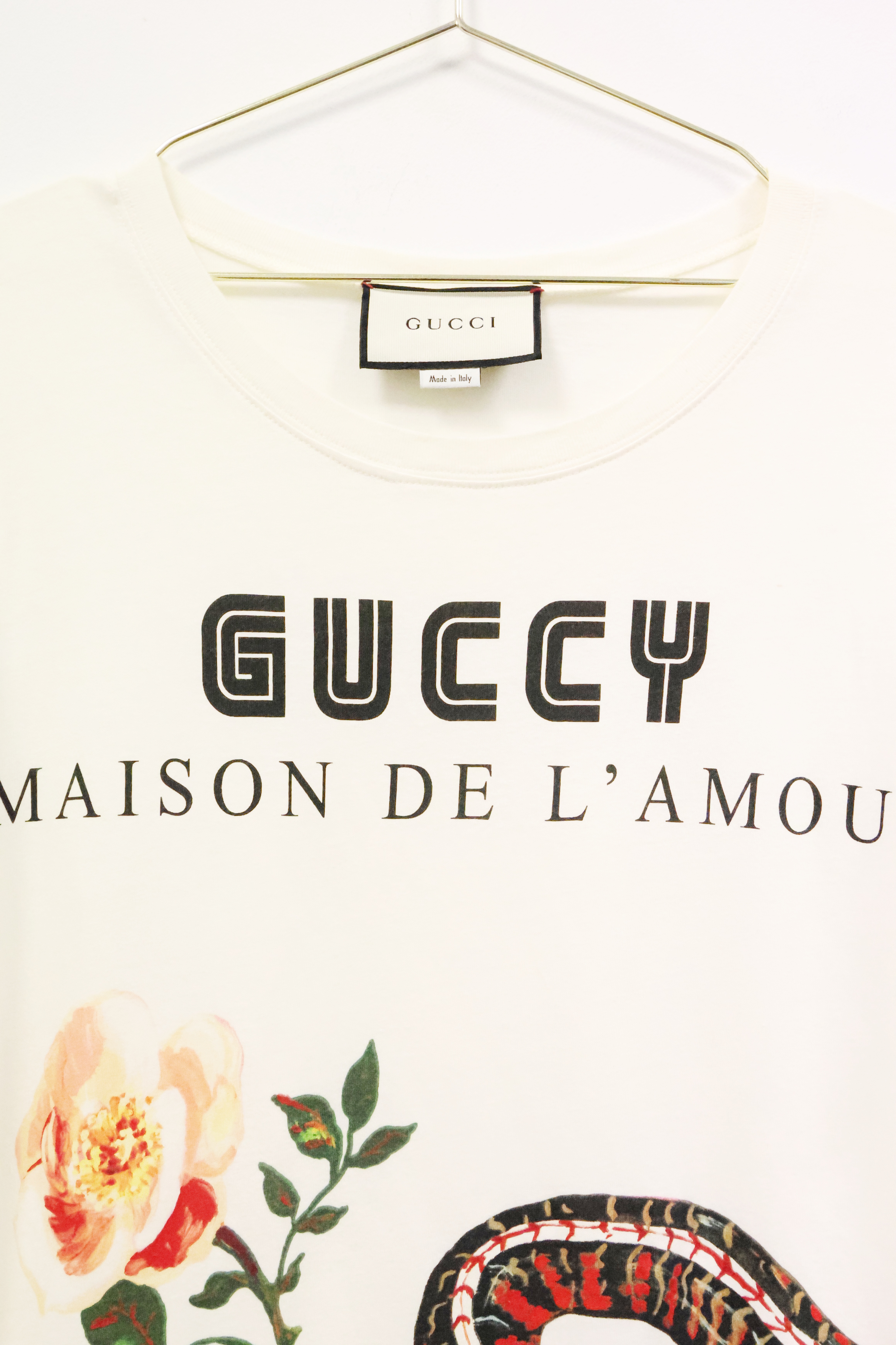 Kremowy t-shirt z wężem, GUCCI