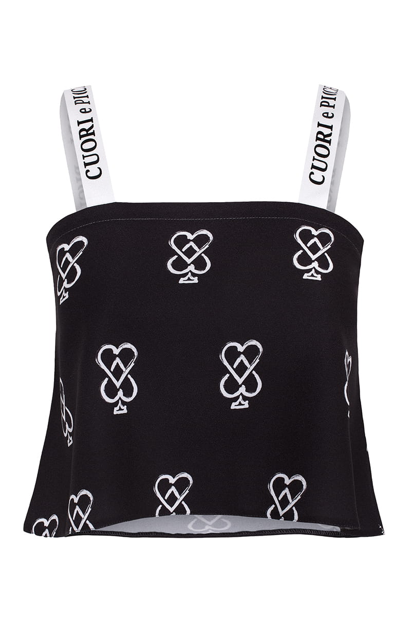 Logowany, czarny top, NOWY, CUORI E PICCHE, 36 (S)