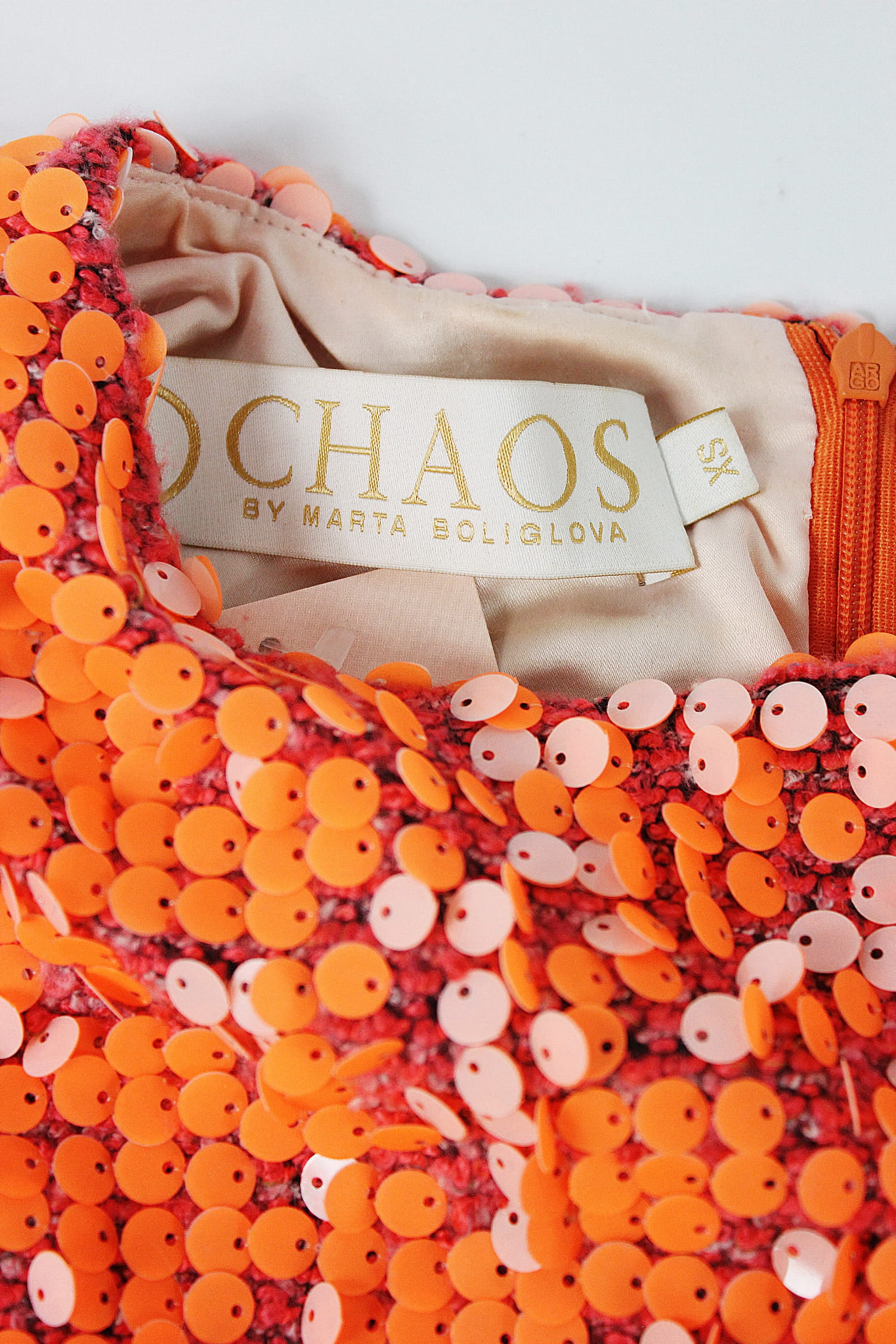 Pomarańczowa sukienka z cekinami, CHAOS, 34 (XS)