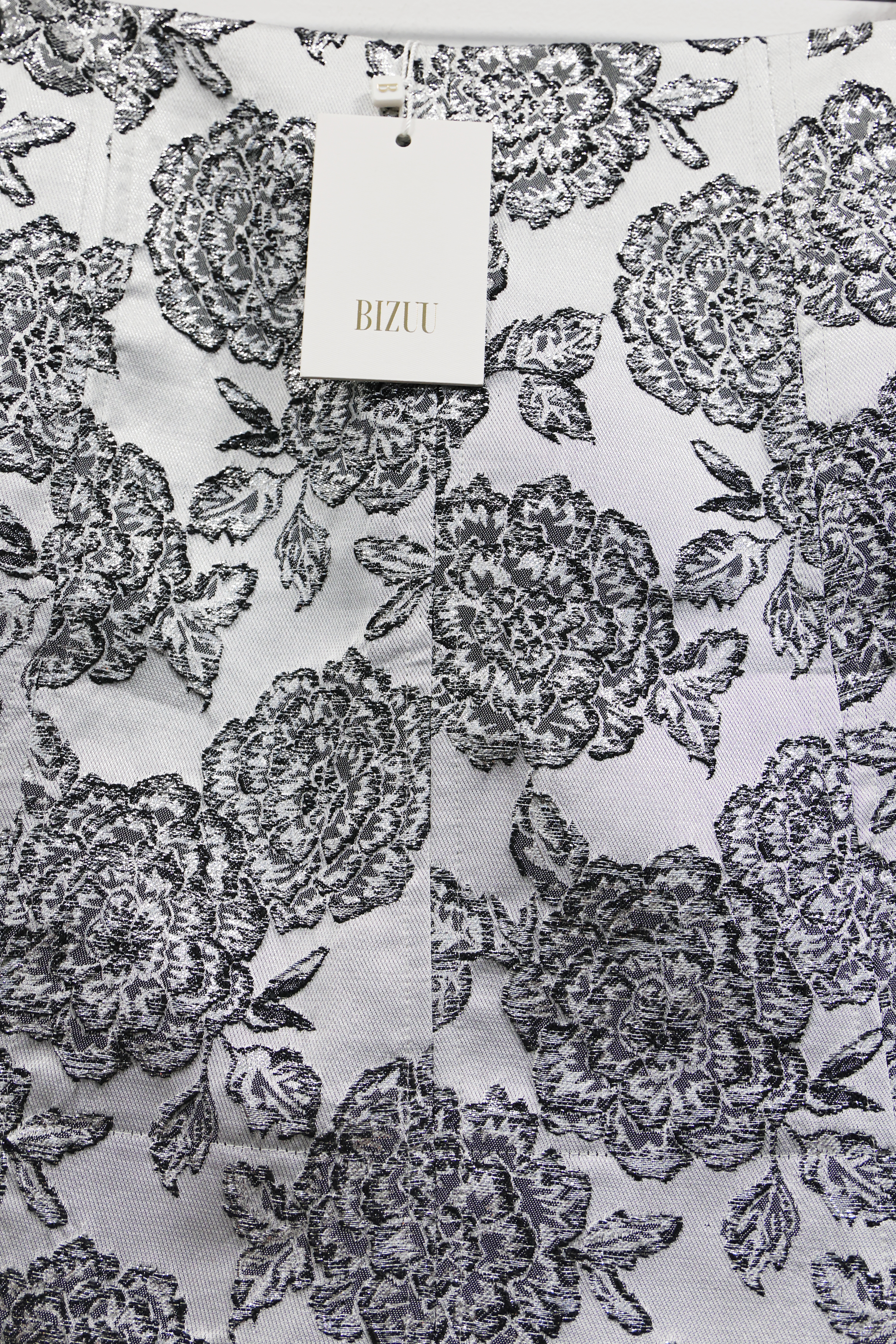 Skład: 56% poliester, 13% nitka metalizowana, 1% spandex; podszewka 100% acetat