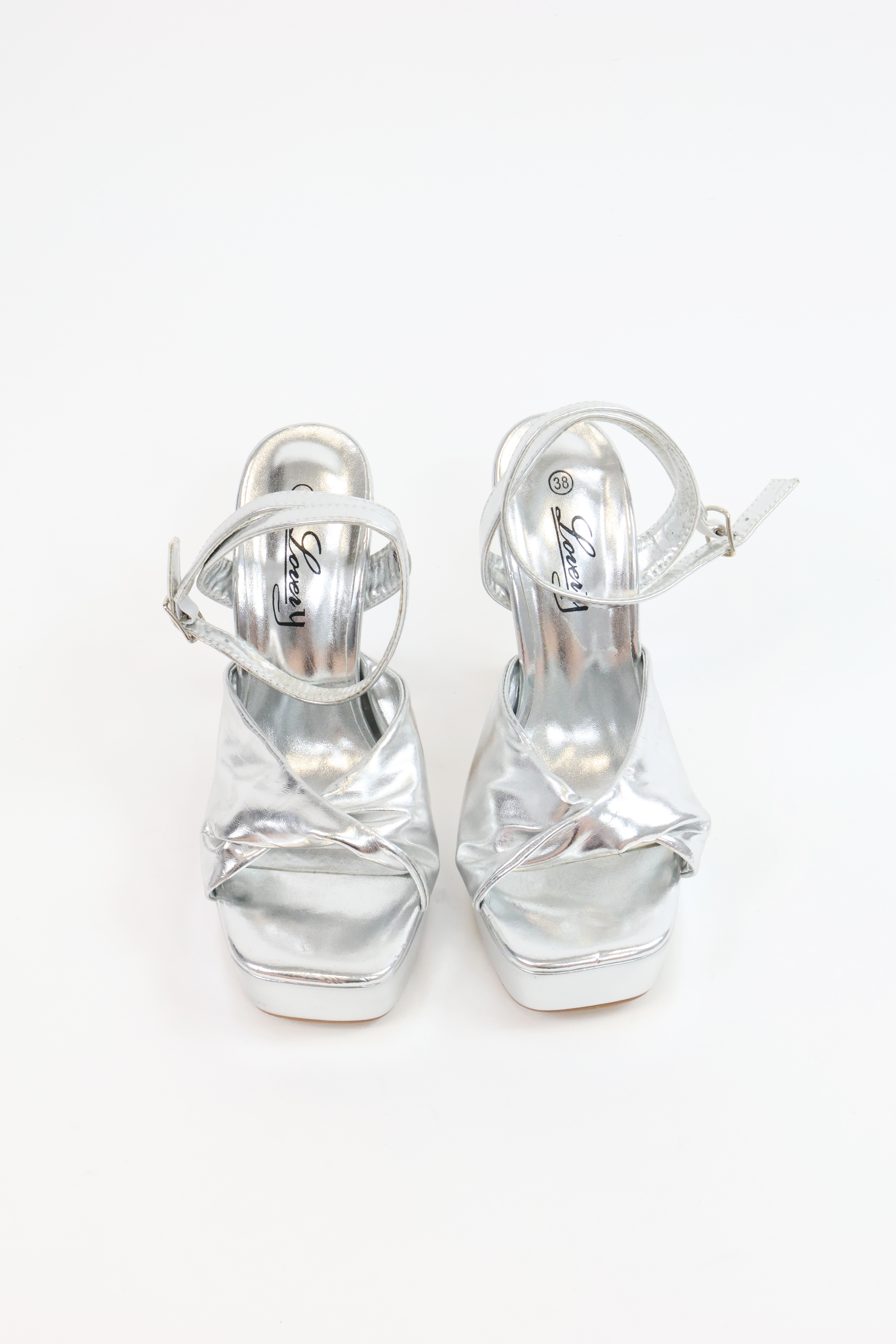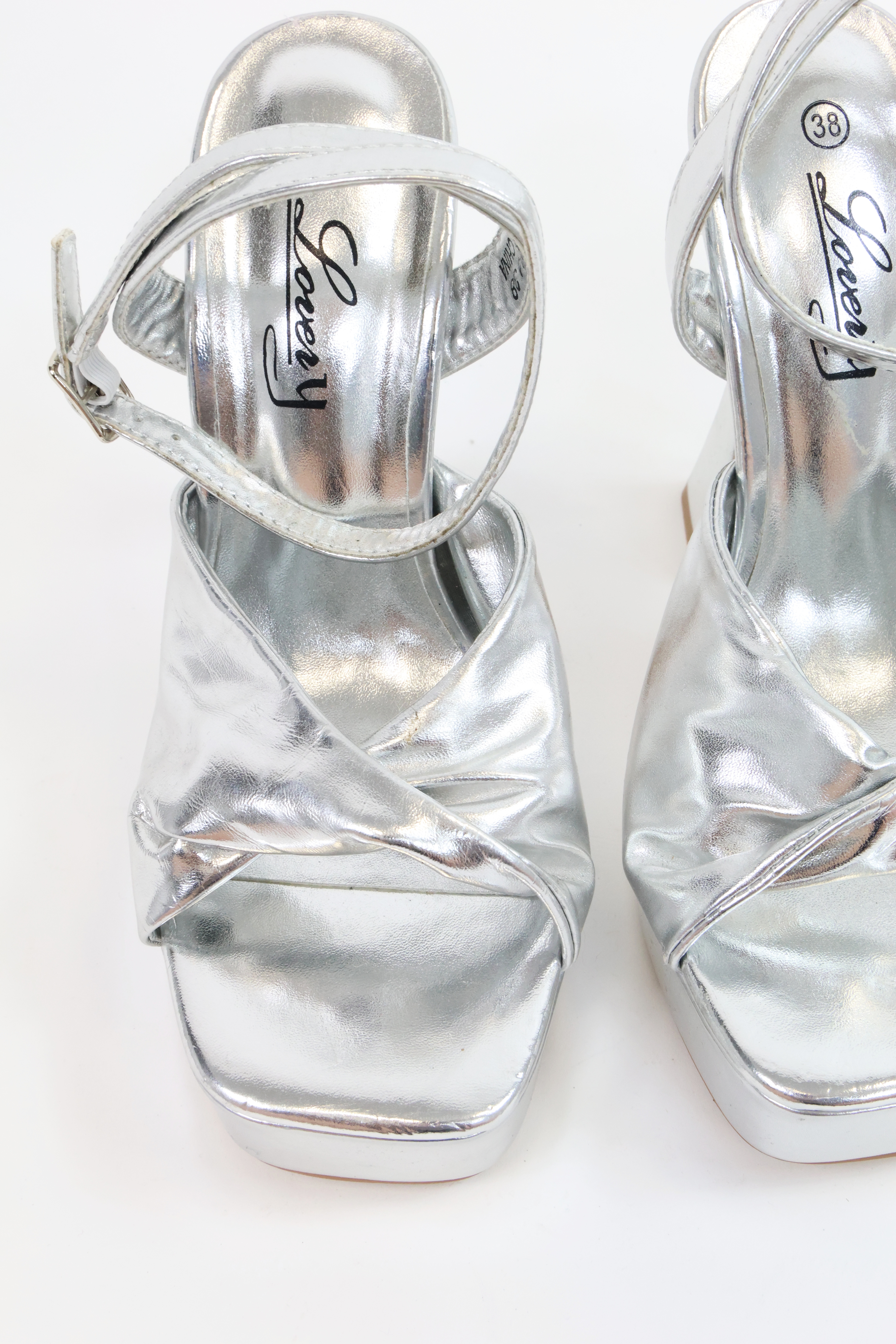 Srebrne sandały na platformie, NOWE, LOVERY, 38