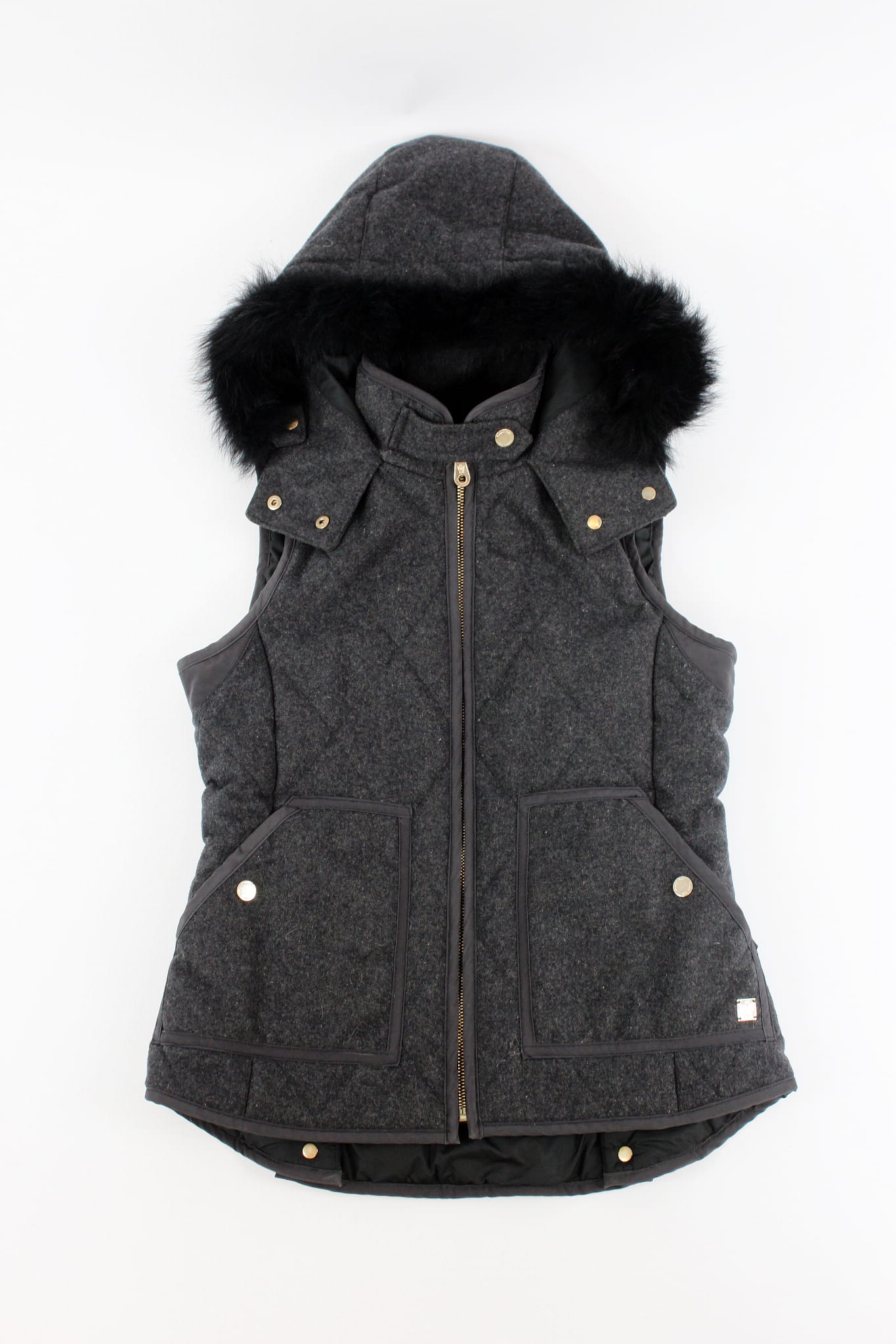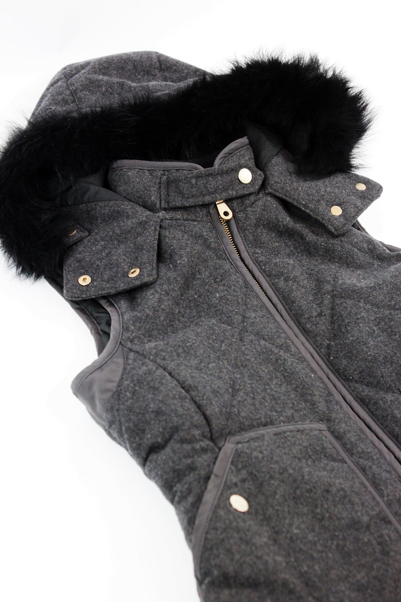 Szara, wełniana kamizelka z kapturem, MASSIMO DUTTI, 36 (S)