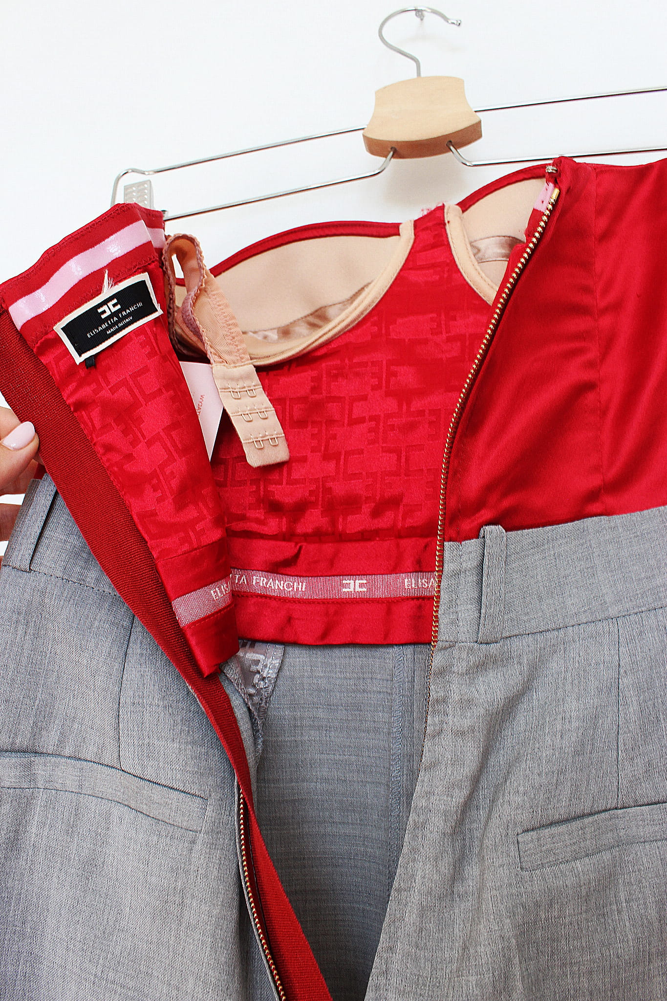 Szaro-bordowy, wełniany kombinezon, ELISABETTA FRANCHI, 34 (XS)