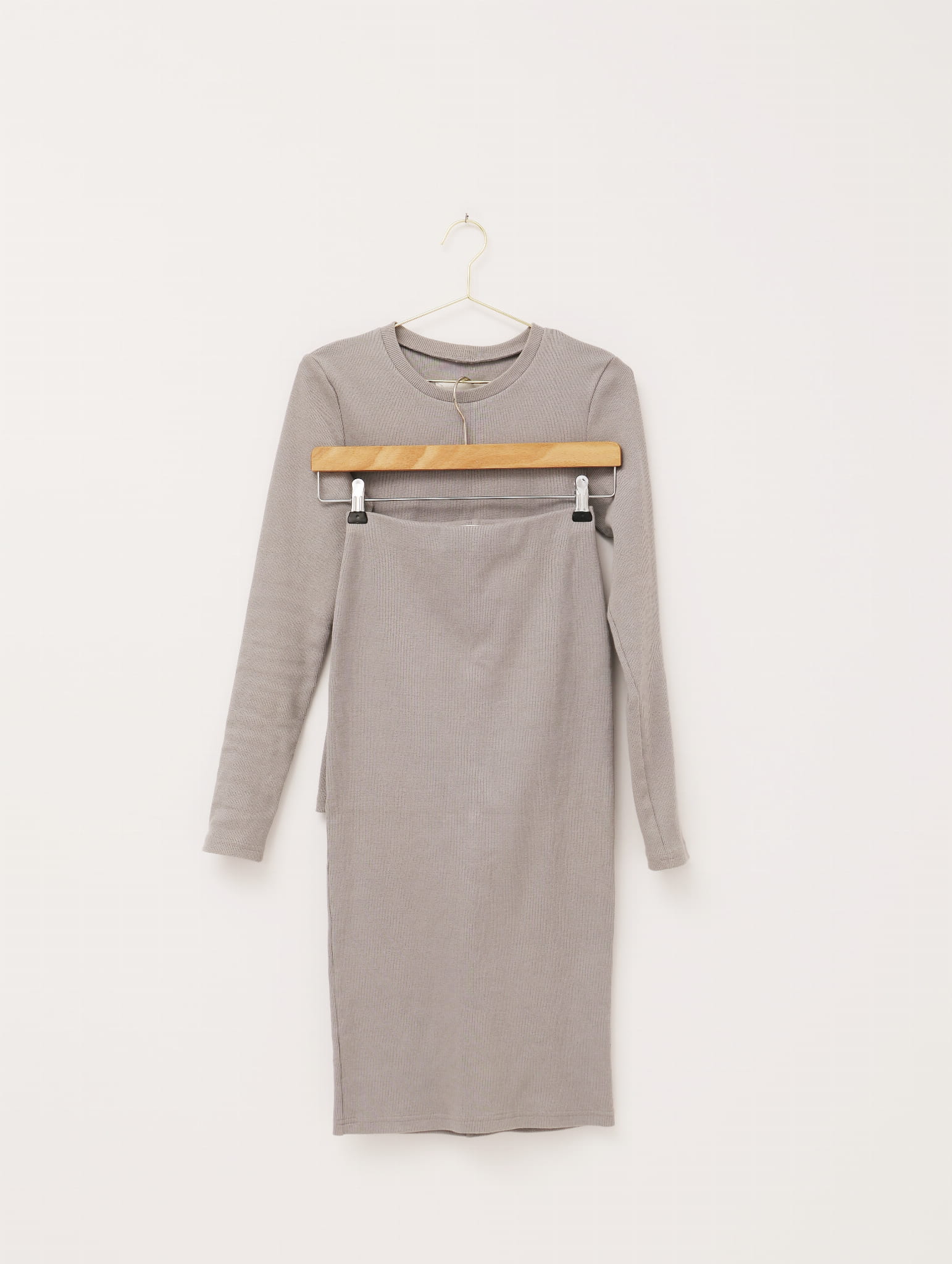 Szary komplet w prążki (spódnica + bluzka), NUDYESS, 34/36 (XS/S)
