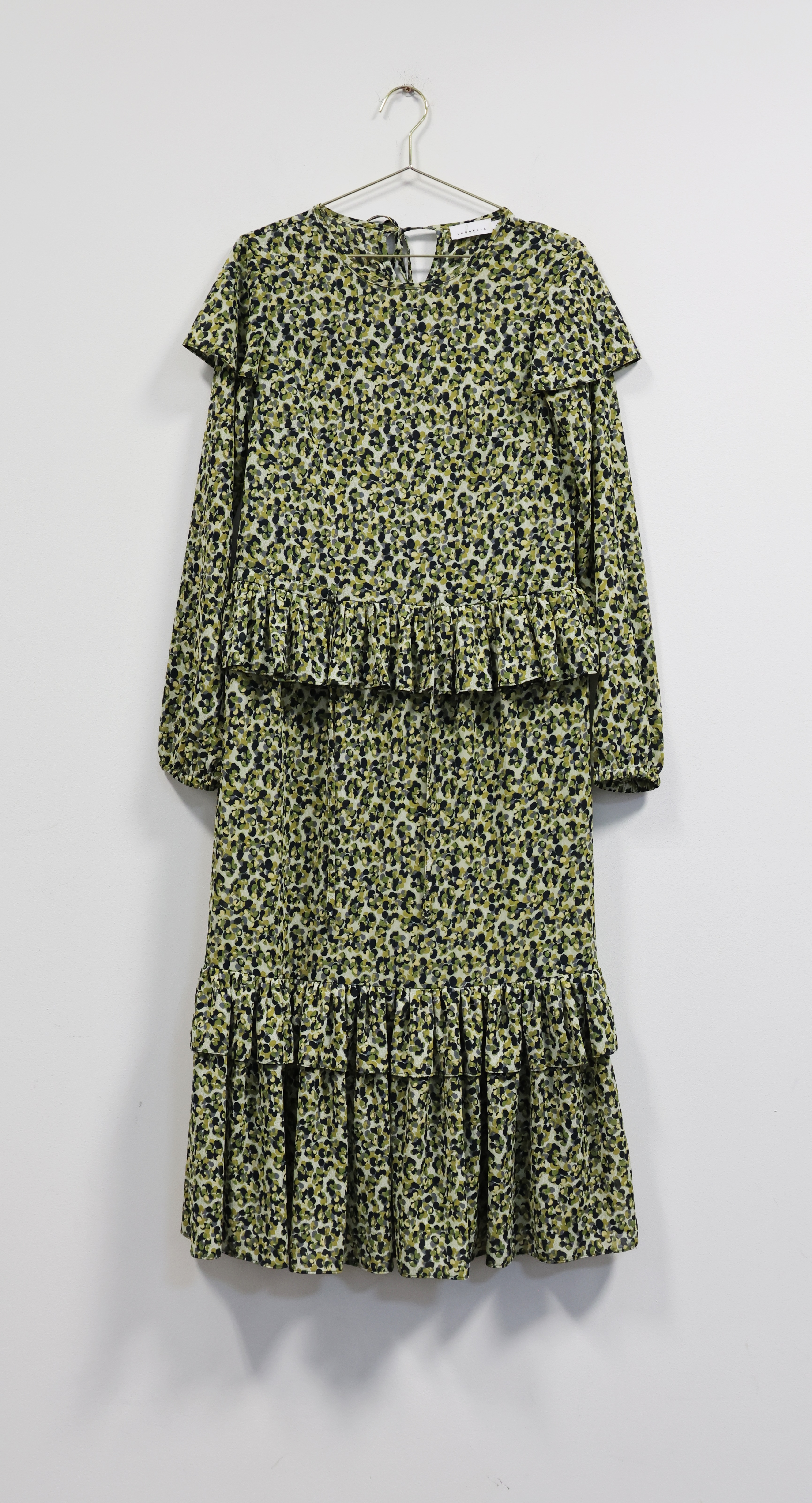 Zielona sukienka w kolorowy wzór, LAURELLA, 36 (S)