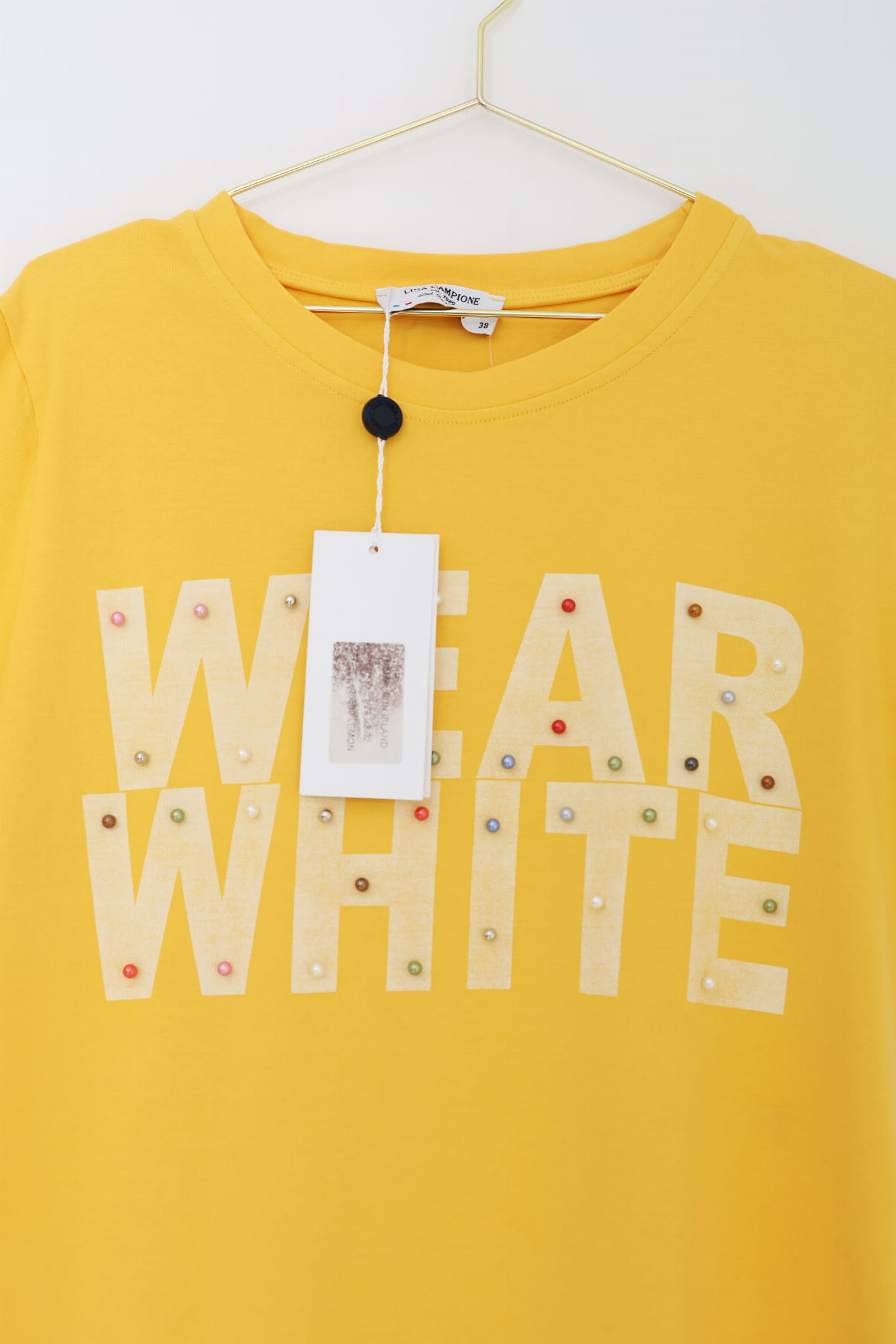 Żółta koszulka z napisem, NOWA, LISA CAMPIONE, 38 (M)